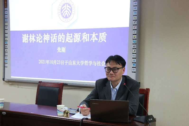 10月23日,北京大学先刚教授以“谢林论神话的起源和本质”为题做了学术报告,王丁副研究员主持,经理刘森林教授、哲学系冯波教授和梁乐睿副研究员参加了报告。
