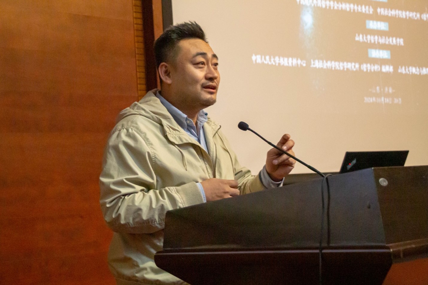 朱菁教授的报告以“从《论道》看分析哲学中国化之道的探寻”为主题。他指出,金岳霖先生的《论道》并非简单的西方分析哲学的搬运或中国哲学的分析化,而是分析哲学中国化的先驱之作,它运用分析哲学的方法构建了植根于中国传统思想的形而上学体系,但由于其思想的深刻性和表达方式的特殊性,其价值和影响至今仍有待充分挖掘。