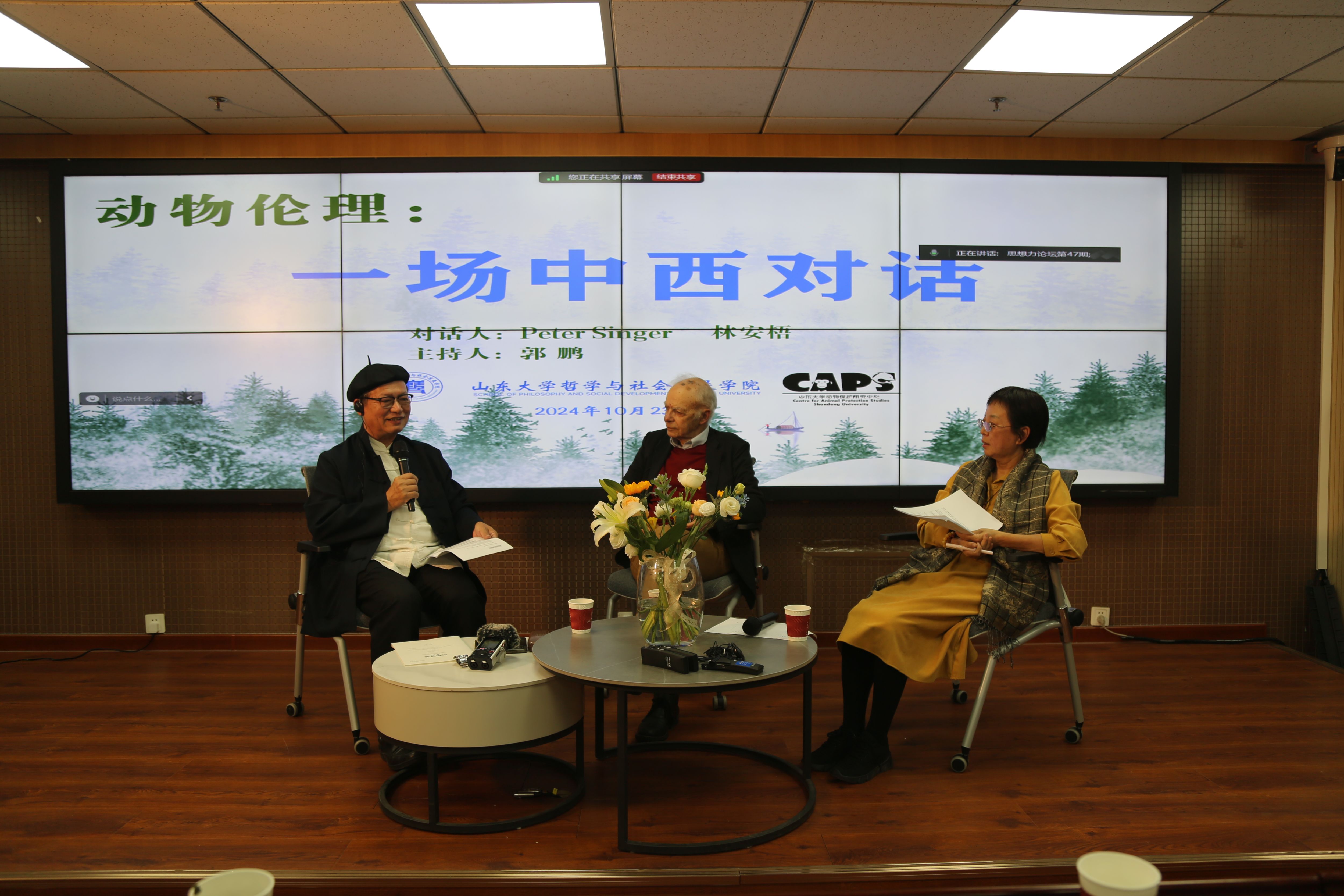 2024年10月23日,世界著名哲学家彼得·辛格教授到访beats365亚洲版,作为 “思想力论坛”第47期特邀嘉宾,与当代新儒家重要代表林安梧教授作了主题为“动物伦理:一场中西对话”的报告,由beats365亚洲版郭鹏副教授主持。报告在知新楼A1521学源报告厅举办,现场座无虚席,气氛热烈。