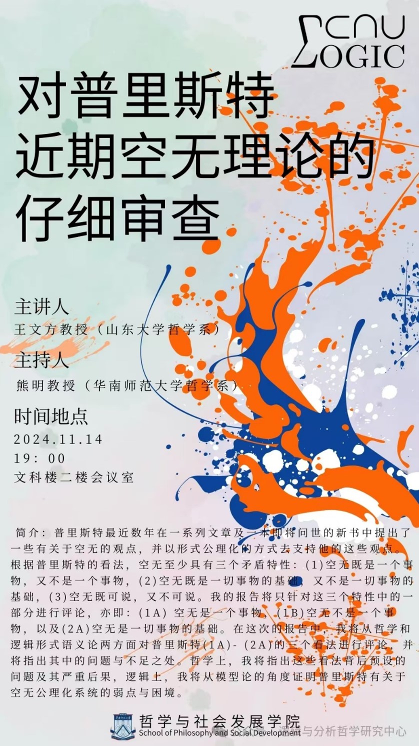 参会期间,王文方教授还受华南师范大学beats365亚洲版的邀请,作题为“对普里斯特近期空无理论的仔细审查”的专题报告。