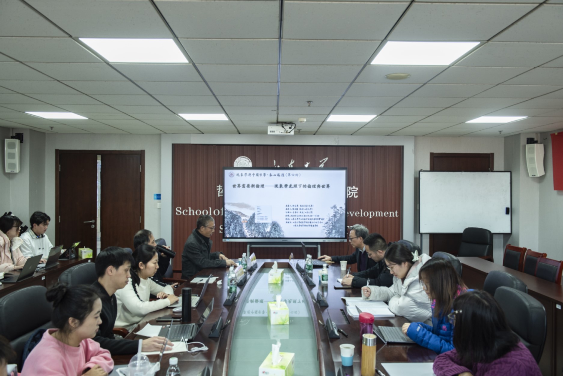 在讲座中,邓安庆教授提出了研究哲学的一个基本原则:不做任何一个哲学家的单纯注释者或著作的“解经学”,而做对我们生活其中的这个世界的思想者。思想必须统领学术。这是因为,(1)当前人类面临的世纪大变局,呼唤一个超越传统、民族、和国家的新伦理形态;(2)目前国际上流行的三大规范伦理形态已经失效;(3)伦理的世界性内在地要求探究世界自身的伦理机制。