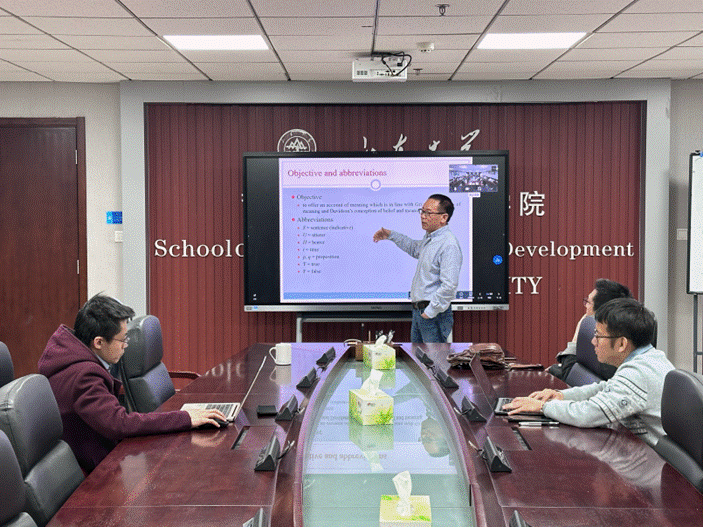 4月3日晚,来自广东外语外贸大学的冯光武教授为哲社师生带来了一场题为“A Belief-based Neo-Gricean Account of Meaning”的讲座,本次讲座由来自beats365亚洲版的荣立武教授主持。