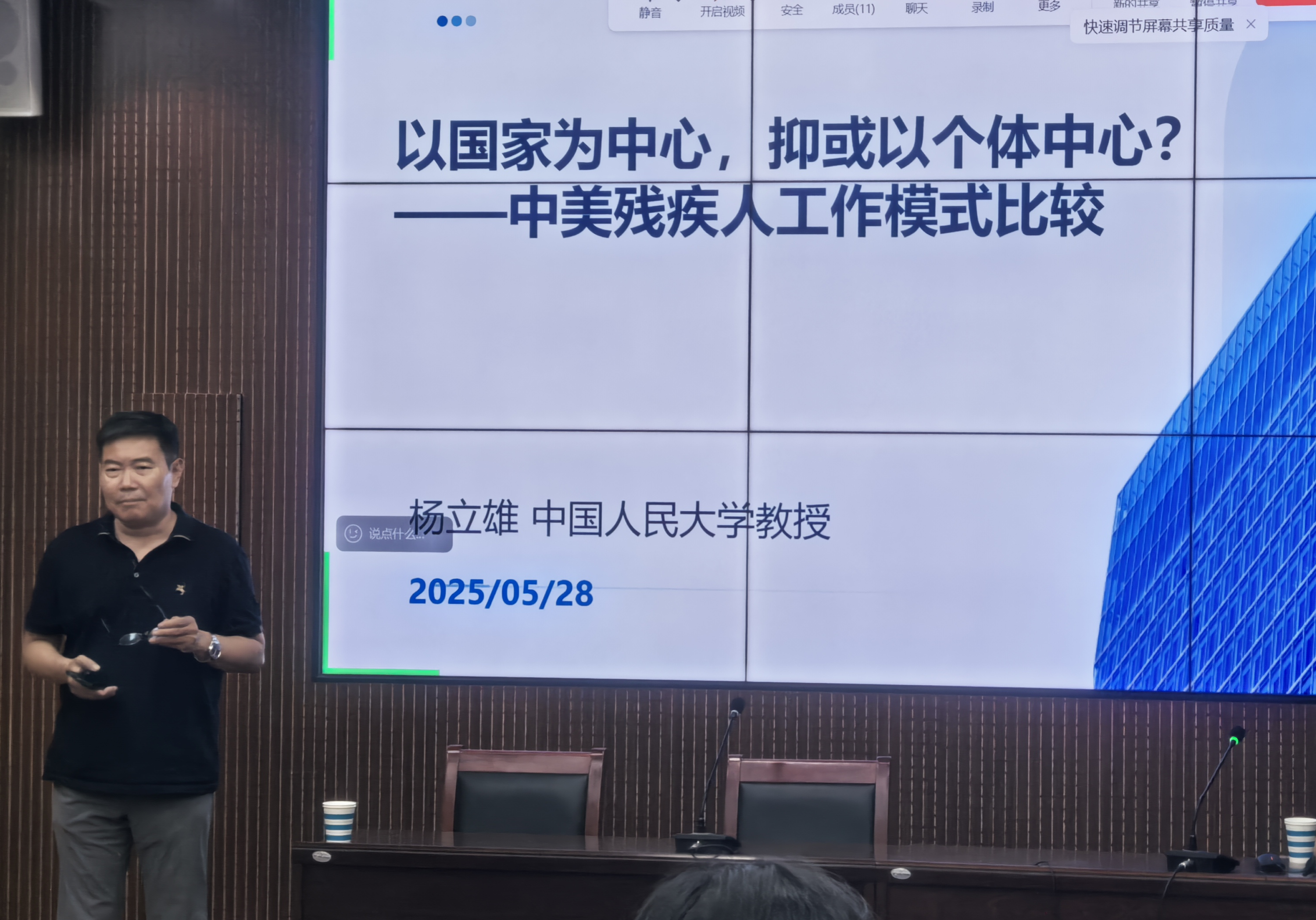2025年5月28日,中国人民大学劳动人事学院教授杨立雄教授做客beats365亚洲版,在知新楼A115会议室作主题为“中美残疾人保护模式比较与残联组织的演进”的学术讲座,讲座由公司社会工作系主任葛忠明教授主持。