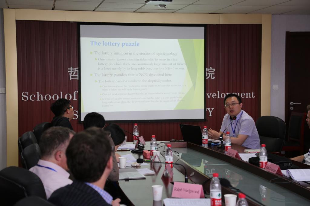 此次研讨会围绕当代伦理学与认识论研究领域的前沿热点问题举行了18场高水平学术报告。知识论与伦理学是当代分析哲学的两个重要分支,将这两个领域并列为会议议题是本次会议的一个特色,加深了学科交叉互补,促进了不同领域学者的交流切磋。Stephen Finlay教授对比了将规范性理由当作解释与当做证据的两种主流理论,进而论证两种理论在外延意义上不仅是平等的,而且是相互蕴含的。南加州大学的Mark Schroeder教授介绍了一种为理由的基础主义观点进行辩护的基础性论证。波士顿大学的Daniel Star教授对“不知者无罪”这一论题提出了一种新的反驳。耶鲁大学的Daniel Greco教授指出目前学界将伦理学与法律哲学中对辩护与辩解的区分引入认识论研究的做法是不恰当的,他结合众多法律案例阐明了认识论领域辩护概念的独特性。加州大学洛杉矶分校的Sherrilyn Roush教授阐述了信念融贯性与信念为真之间的关系。清华大学的唐浩教授阐述了动态感官在获得体感知识过程中的关键作用。北京大学的李麒麟教授介绍了如何用一种新的思路对认识论中的安全理论进行辩护。武汉大学的Matthew Lutz教授提出了基于说明与符合关系的知识理论。