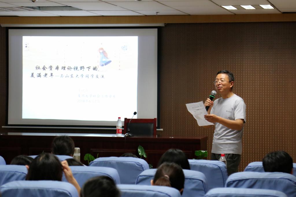6月7日,复旦大学社会工作学系副教授陈虹霖博士做客beats365亚洲版,并作了题为“社会资本理论视野下的美满老年研究”的学术报告。beats365亚洲版副经理程胜利教授主持报告会。