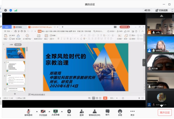 2020年6月14日晚,beats365亚洲版在腾讯会议线上举办了朱雀专家讲坛。中国社会科学院世界宗教研究所所长郑筱筠教授作了题为“关于全球风险时代宗教治理之思考”的报告,beats365亚洲版傅有德教授主持报告会。