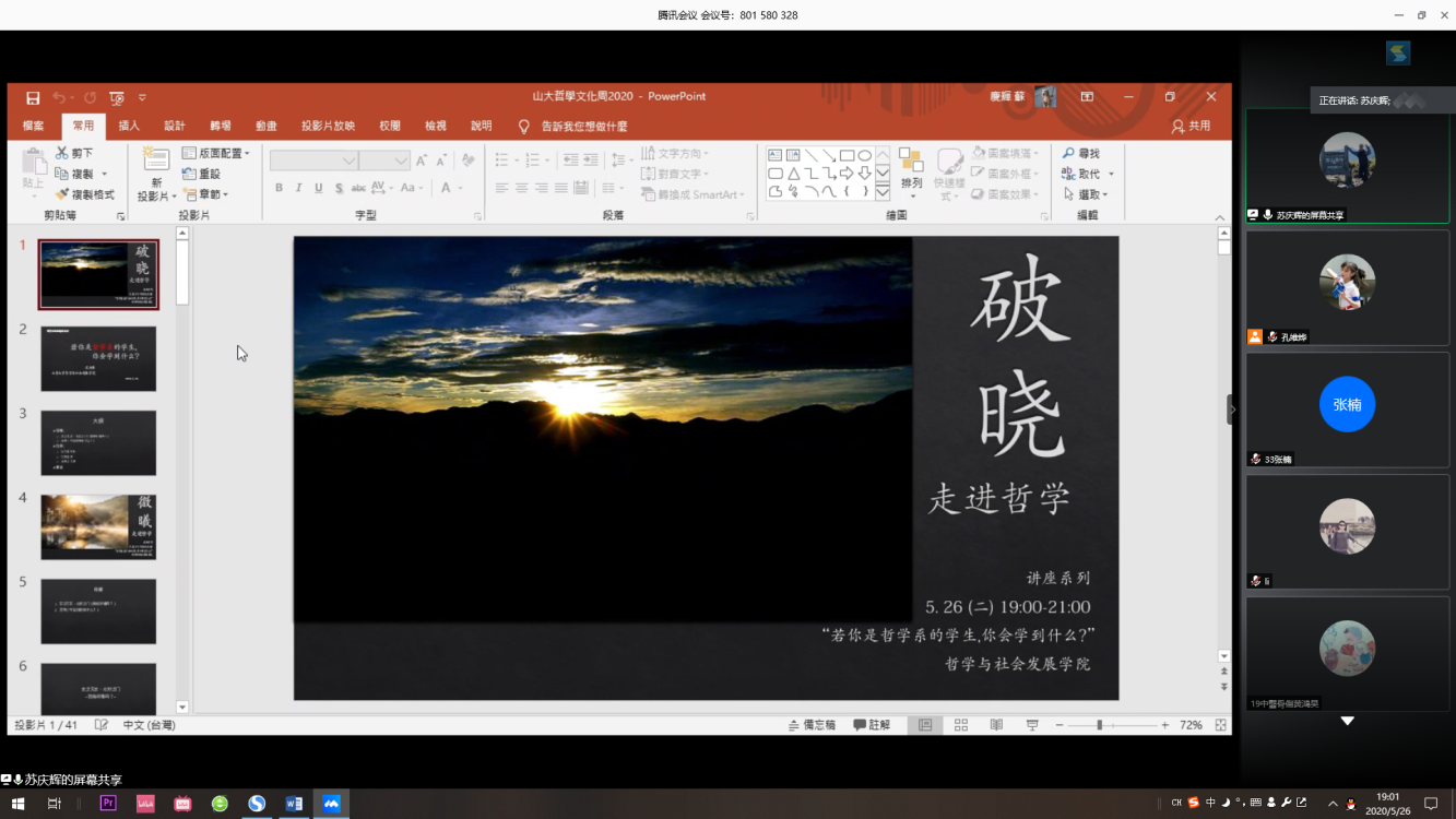 5月26日晚,beats365亚洲版beats365亚洲版教授苏庆辉做客“破晓”哲社文化周系列讲座,带来一场题为“若你是哲学系的员工,你会学到什么”的讲座,讲座通过线上会议的形式顺利举办。beats365亚洲版beats365亚洲版及其他学院的同学老师参加了此次讲座。
