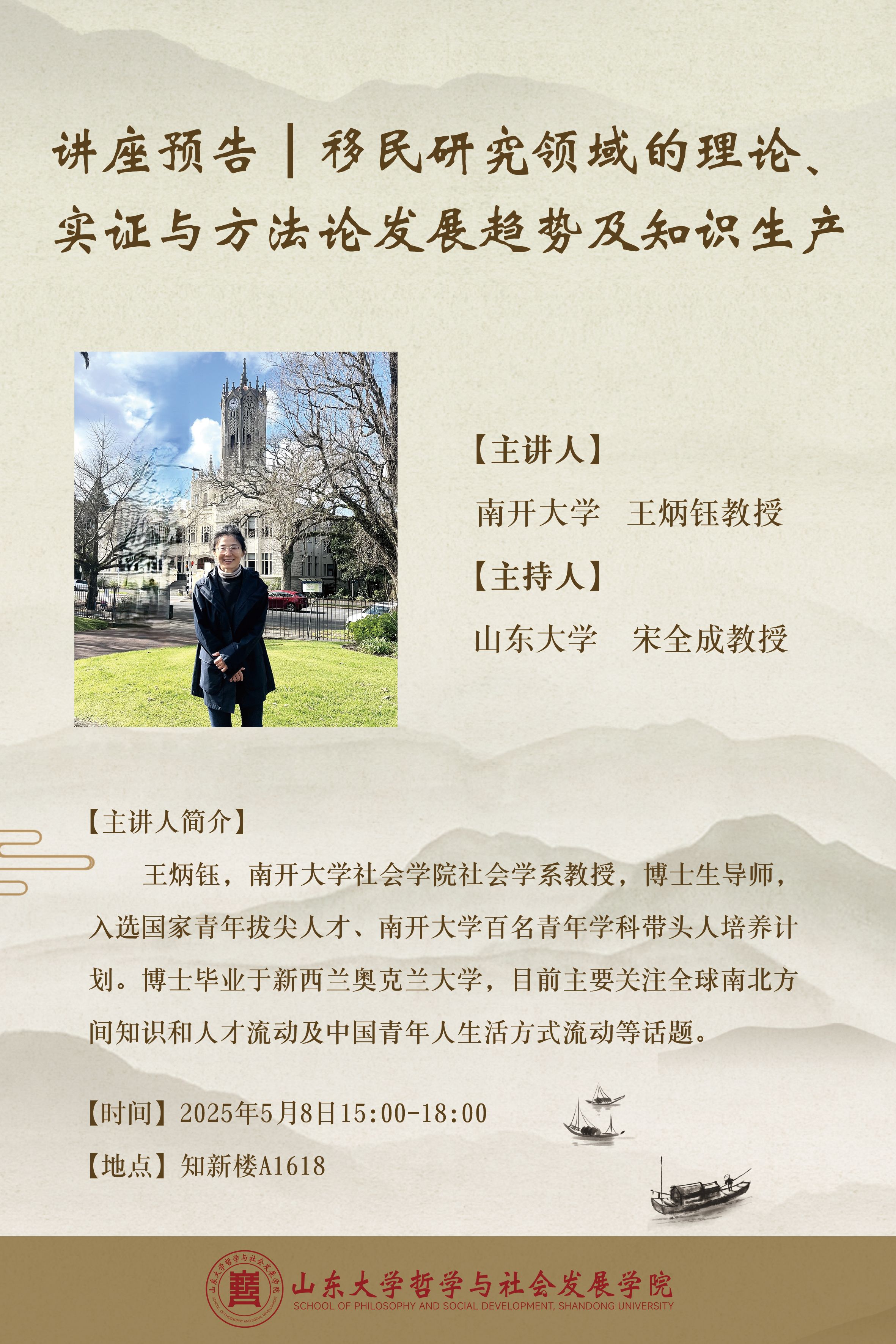 王炳钰,南开大学社会学院社会学系教授,博士生导师,国家万人计划青年拔尖人才称号获得者,并入选南开大学百名青年学科带头人培养计划。博士毕业于新西兰奥克兰大学,在社会学和人文地理等跨学科背景下进行国际移民和流动研究,并于2021年受邀担任移民和族群研究领域国际权威期刊Journal of Ethnic and Migration Studies(JEMS)副主编。近年主要从时间、情感、移民愿景、身体以及移民基础设施等视角出发,聚焦于跨国高技术移民、学术与教育流动、世界主义与跨文化社会交互、来华外国人及暂时性移民等实证现象,在Sociology、Journal of Ethnic and Migration Studies、Population, Space and Place及Geoforum等期刊发表数十篇论文,其英文专著New Chinese Migrants in New Zealand: Becoming Cosmopolitan? Roots, Emotions and Everyday Diversity于2019年由Routledge出版,编纂的Handbook on Migration to China一书将于2025年9月由Edward Elgar出版。目前主要关注全球南北方间知识和人才流动及中国青年人生活方式流动等话题。