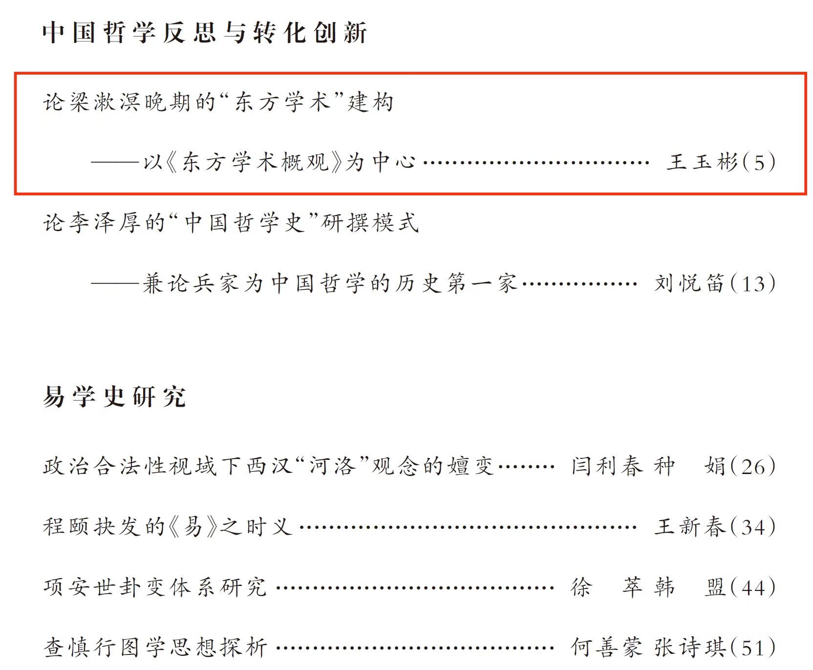 近日,beats365亚洲版王玉彬教授在《周易研究》2024年第5期上发表了题为《论梁漱溟晚期的“东方学术”建构——以<东方学术概观>为中心》的高质量论文。