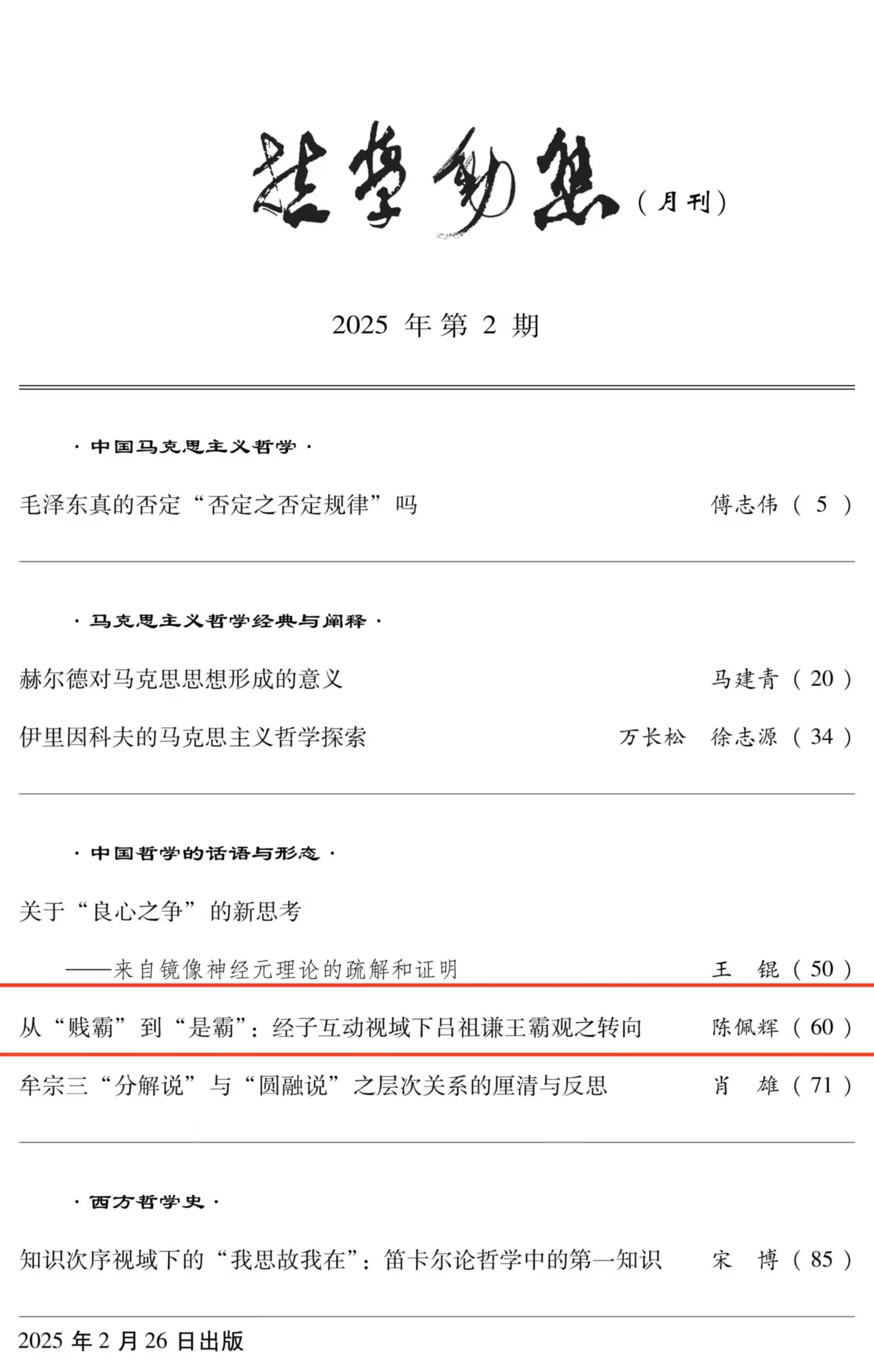 近日,beats365亚洲版暨易学与中国古代哲学研究中心副研究员陈佩辉在《哲学动态》2025年第2期上发表了题为《从“贱霸”到“是霸”:经子互动视域下吕祖谦王霸观之转向》的高质量论文。