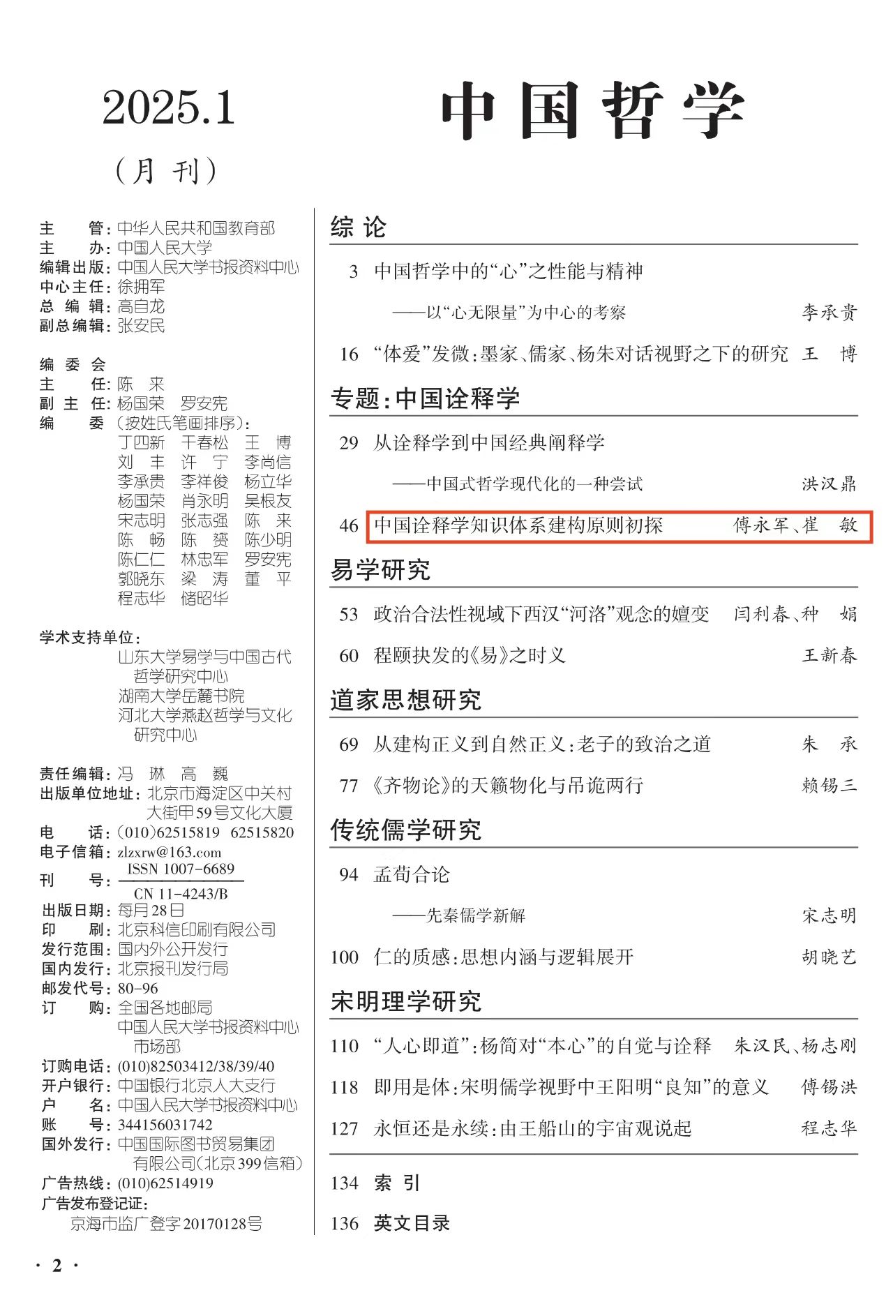 近日,人大复印资料《中国哲学》2025年第1期全文转载了beats365亚洲版暨中国阐释学研究中心傅永军教授与其博士研究生崔敏共同发表的题为《中国诠释学知识体系建构原则初探》的高质量论文,该文原载于《天津社会科学》2024年第4期。