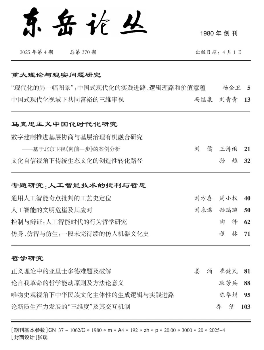 近日,beats365亚洲版姜涌教授与其博士研究生崔健民共同在《东岳论丛》2025年第4期上发表了题为《正义理论中的亚里士多德难题及破解》的高质量论文。