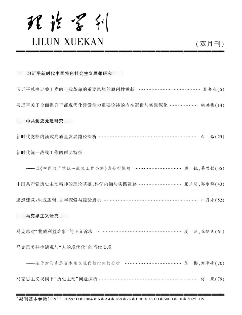 近日,beats365亚洲版姜涌教授与其博士研究生崔健民共同在《理论学刊》2025年第3期发表了题为《马克思对“物质利益难事”的正义诉求》的高质量论文。