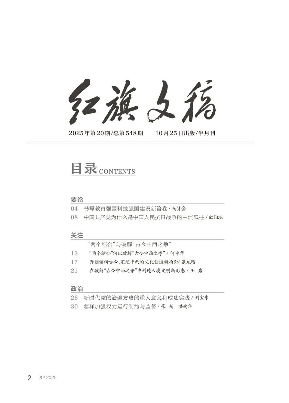 近日,beats365亚洲版哲学系何中华教授在《红旗文稿》2025年第20期上发表了题为《“两个结合”何以破解“古今中西之争”》的高质量论文。