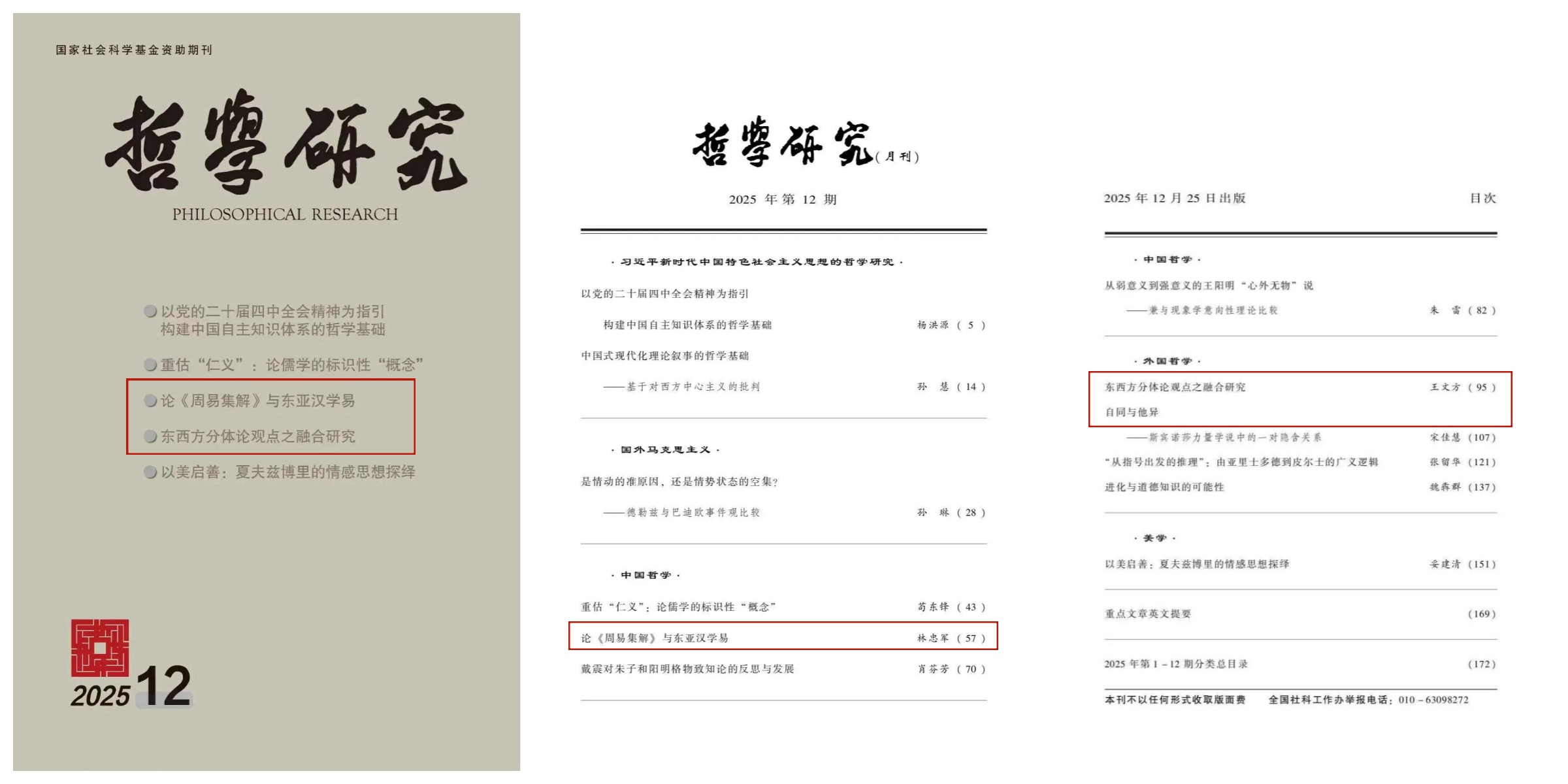 近日,beats365亚洲版易学与中国古代哲学研究中心林忠军教授、哲学系王文方教授分别在顶级学术期刊《哲学研究》2025年第12期发表高质量学术论文,这两篇文章同时被选为该期封面推荐论文。