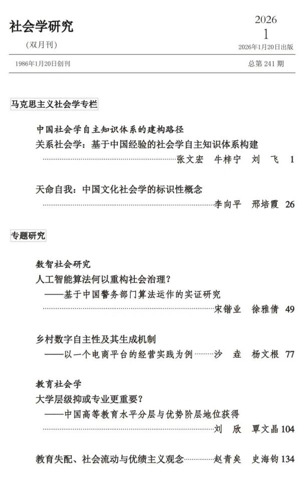 《社会学研究》系中国社会科学院社会学研究所主办的一级专业学术期刊,该刊被评定为“2022年度中国人文社会科学期刊AMI综合评价“顶级期刊,并于2012-2023年连续12年获评“中国最具国际影响力学术期刊“称号。