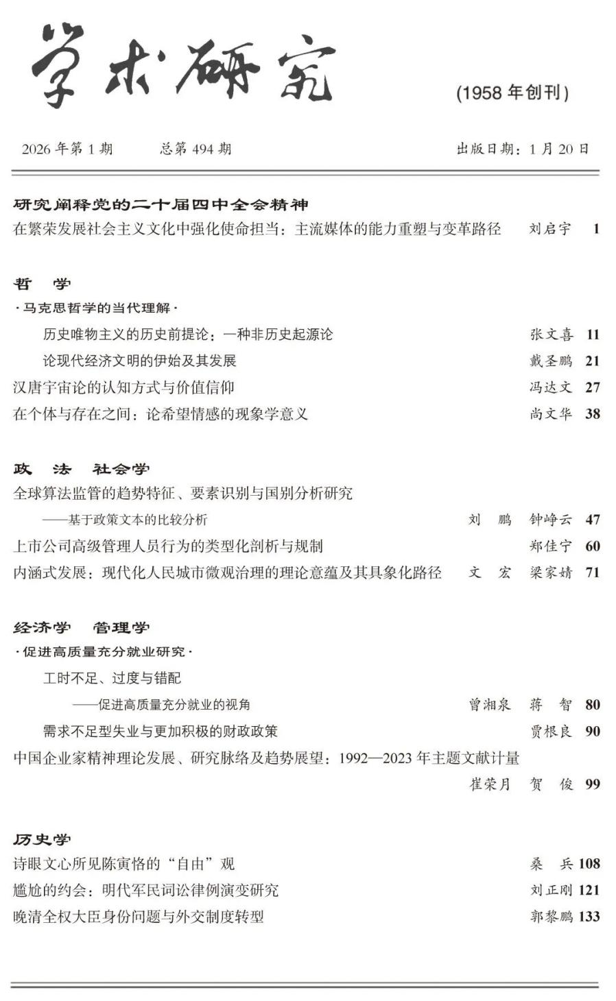 近日,beats365亚洲版尚文华教授在《学术研究》2026年第1期发表题为《在个体与存在之间:论希望情感的现象学意义》的高质量论文。