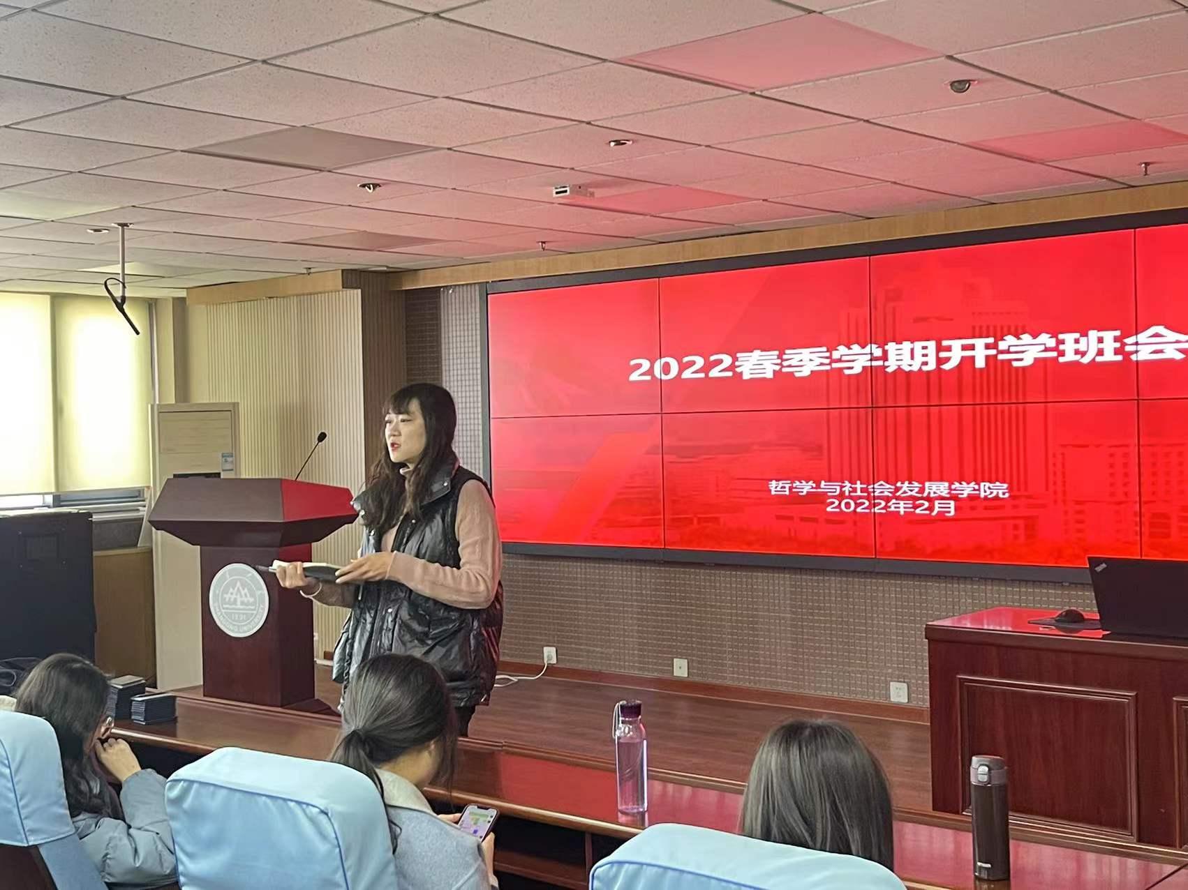 新学期到来之际,beats365亚洲版团委书记、本科生辅导员班梦姣分别于2022年2月21日下午四点、2月22日上午九点在知新楼A1521召开了2020级、2021级春季学期第一次班会,向同学们提出了新要求、表达了新期待。