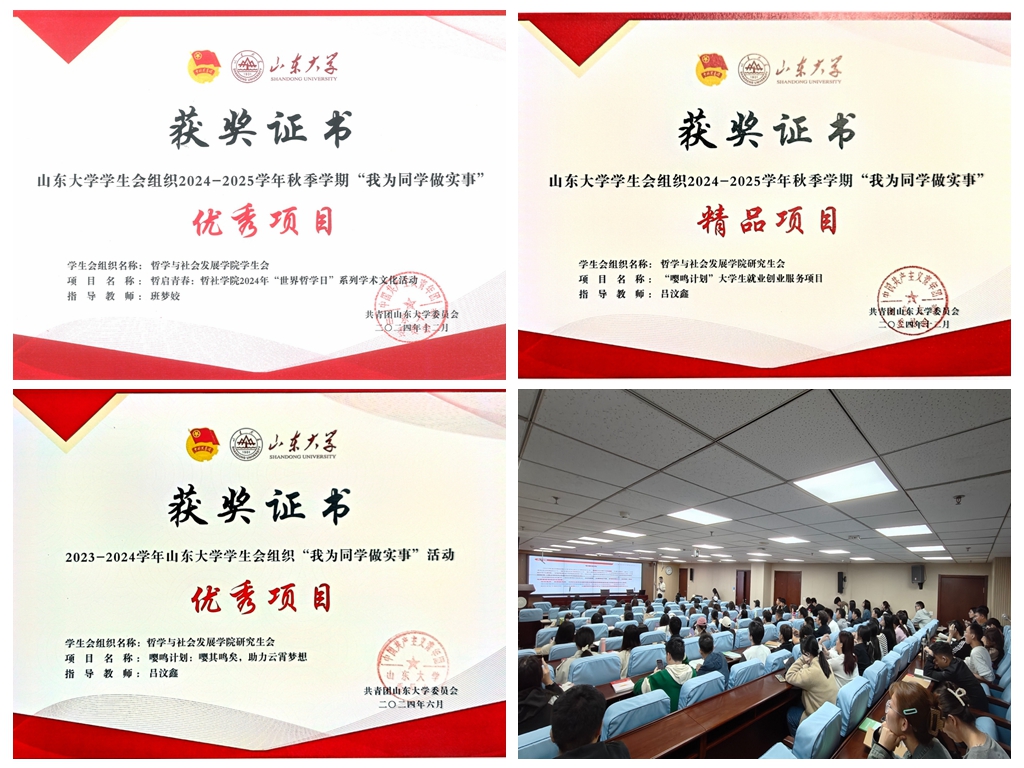 服务实践,打造向学氛围。以“嘤鸣”系列品牌活动为抓手,举办员工创新创业经验分享会、简历设计大赛、模拟求职大赛、生涯发展讲座等二十余场,荣获“我为同学做实事”精品项目和优秀项目,在交流中明晰前路;依托“乐智者”青少年哲学项目,举办乐智者青少年哲学夏令营,在实践中探索学理;编印学院教师作品集《知新文萃》,将哲社名家专著融入迎新“青春行囊”,以“哲思凝慧,社论万象”品读征文为契机,评选出优秀征文14项,在阅读与书写中激发思辨;举办“逐光而行·科学家精神宣讲报告会”,在聆听中厚植信念;赴济南浪潮集团、超算中心科技园、泰康儒园康养中心、百里黄河风景区等地开展企业调研,组织班子成员和支部书记赴深圳访企拓岗,内联外动,扎实推进哲社学子高质量就业。