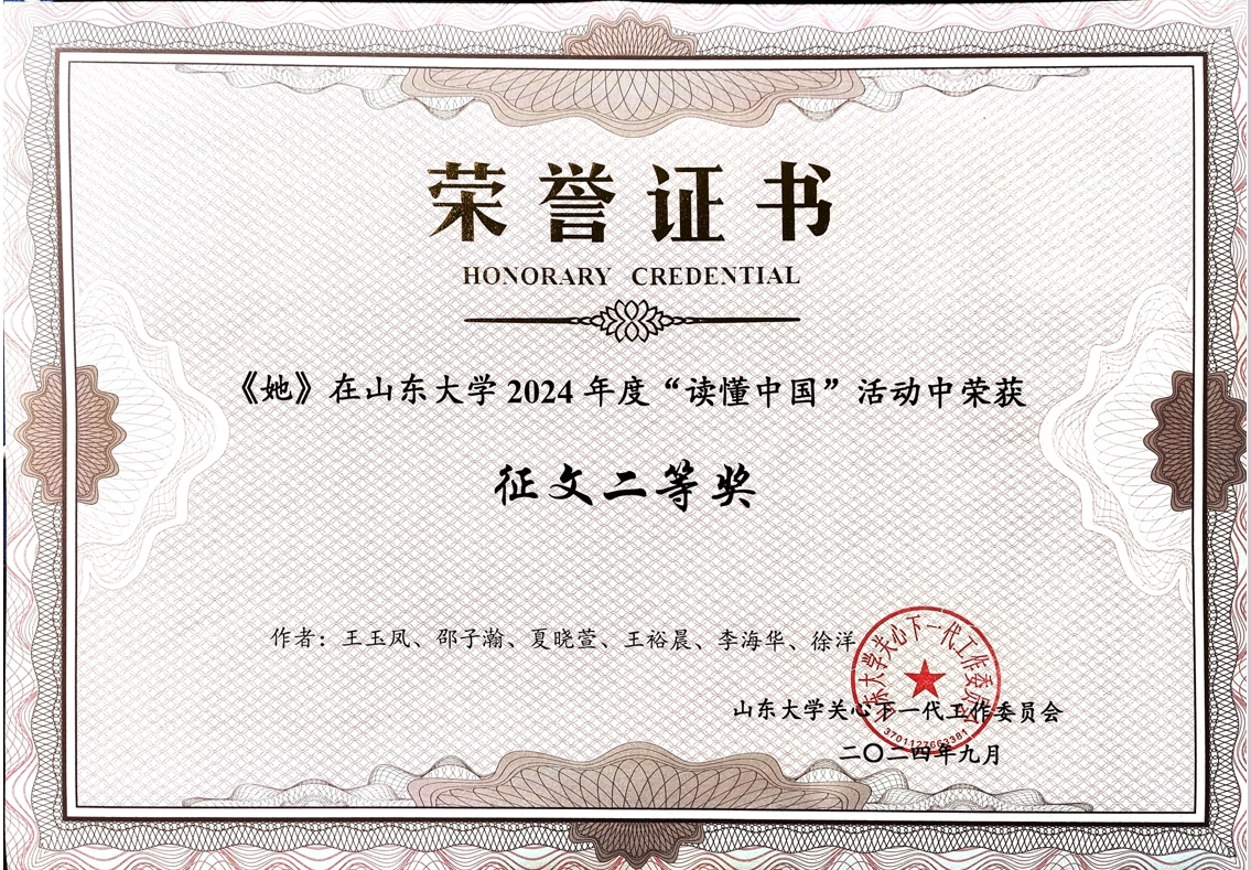 员工在“读懂中国”活动中获奖,其中征文作品《她》获得教育部关工委表彰