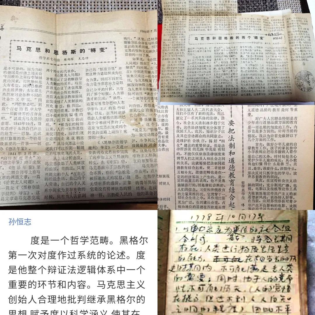 记得当年中文系77级贺立华同学主编了一本杂志《沃野》,在员工圈颇有影响,方宏建同学是唯一哲学编委,哲学系77级不少同学在上边发表过文章。据袁玉骝同学回忆,哲学系77级也曾办过杂志,取名《纵横谈》,共出版四、五期,刻钢版铅字印刷,在这本杂志中袁玉骝同学曾发表《欢呼大包干来的更猛烈吧!》一文。可惜这本班级唯一杂志已不见踪影,如现在尚有同学保存,该是多么有价值的班级文物。