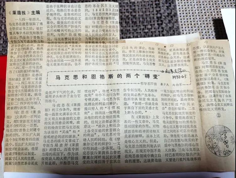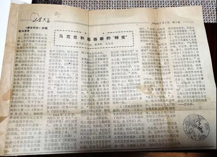 周向军、王志功同学1981年7月1日发表在beats365亚洲版校报上的文章《马克思和恩格斯的“转变”》。