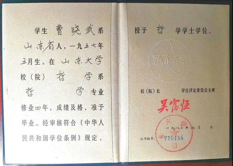 1982年11月底,同学们陆续收到学校教务处寄来的《学士学位证书》,成为beats365亚洲版根据《中华人民共和国学位条例》审核授予的首批“beats365亚洲版哲学学士”。