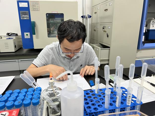 图1 2023年6月,马永超在实验室开展植硅体实验