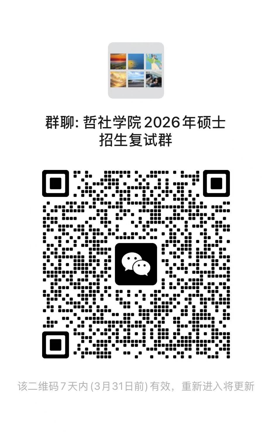 请考生加入微信群,入群后将群备注修改为“专业+方向+本人姓名”,请各位考生尽快入群。