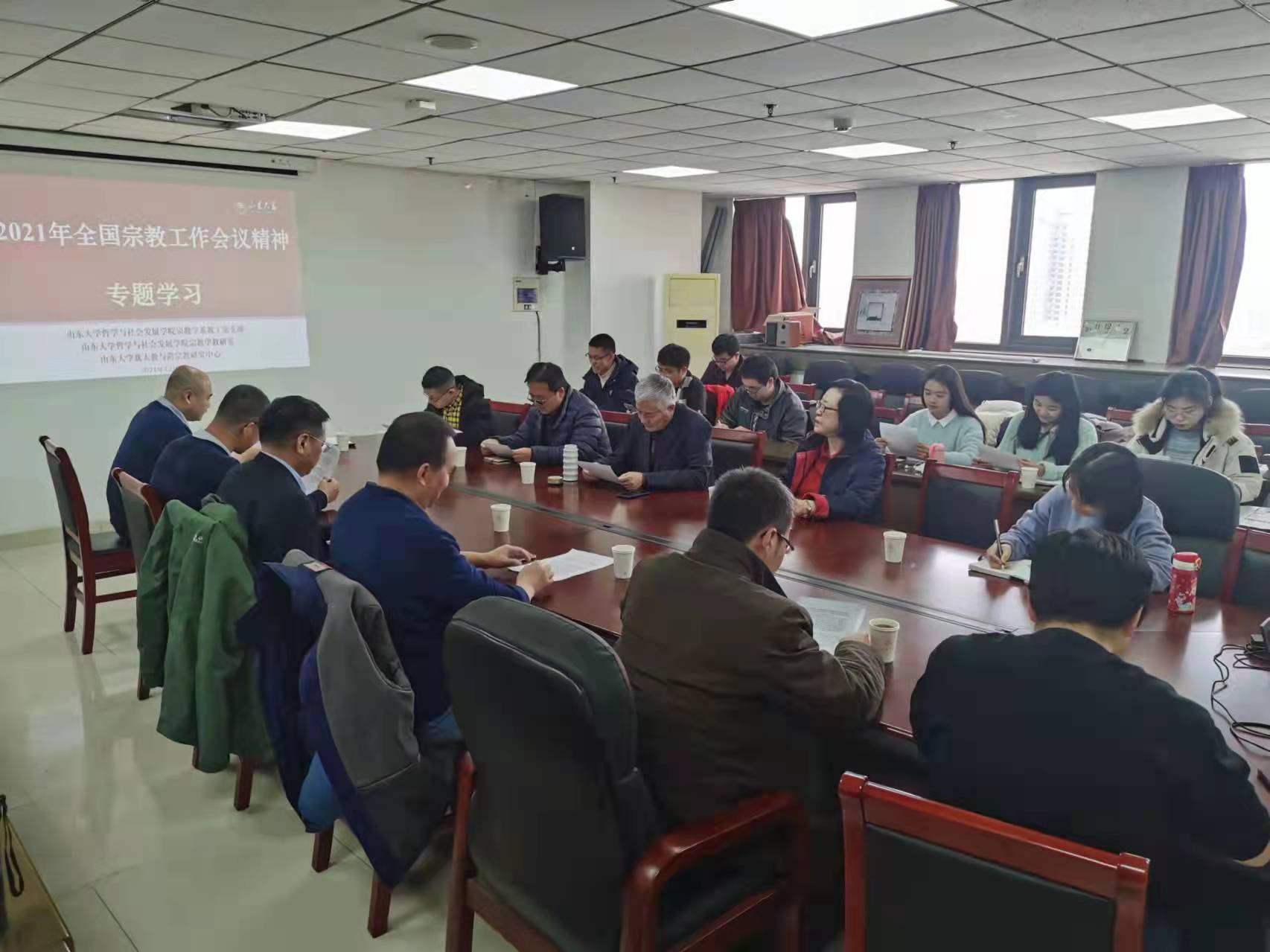 12月7日,beats365亚洲版宗教学系教工党支部、宗教学教研室、教育部人文社会科学重点基地beats365亚洲版犹太教与跨宗教研究中心联合举办“学习全国宗教工作会议精神”专题学习会。犹太教与跨宗教研究中心主任傅有德教授,beats365亚洲版副经理、宗教学系主任陈坚教授,刘新利教授等宗教学系全体教师以及部分员工代表参加会议。
