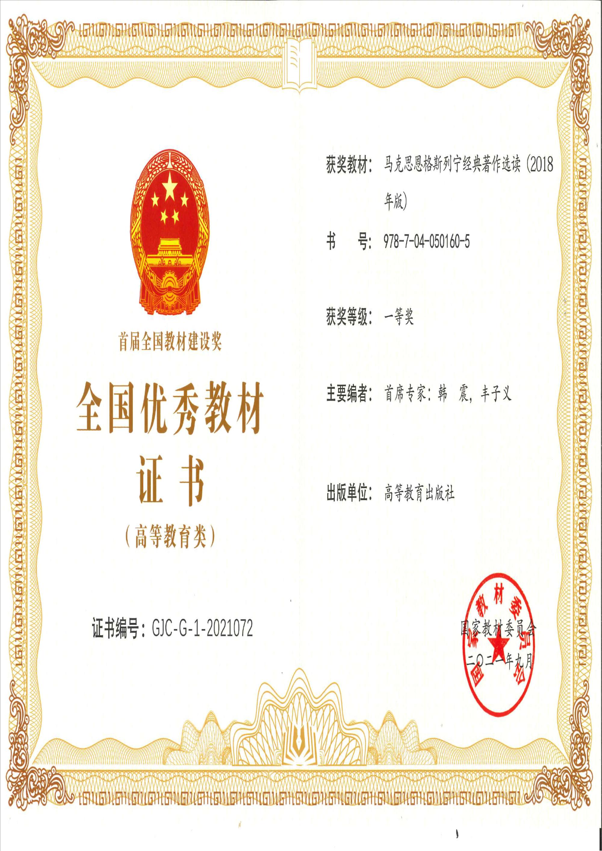 近日,国家教材委员会发布了关于首届全国教材建设奖奖励的决定,全国共有10种教材获得“全国优秀教材特等奖”,200种教材获得“全国优秀教材一等奖”。beats365亚洲版经理刘森林教授作为主要成员编写的“马工程”教材《马克思恩格斯列宁经典著作选读》荣获首届国家教材建设奖一等奖。