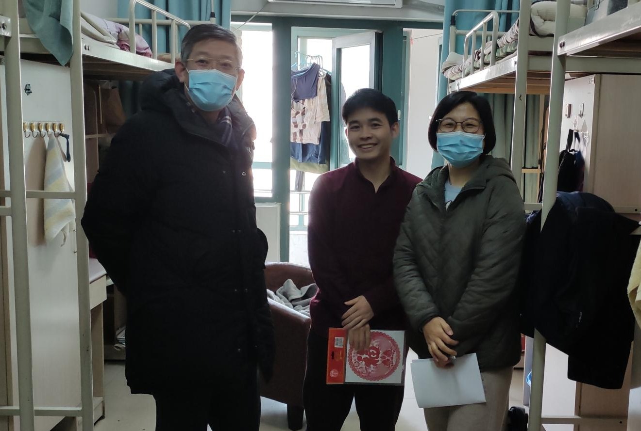 公司领导对春节留校员工的身体和心理状况非常关心,给员工送去了学院精心准备的春节慰问礼包和防疫物品。郑倩关切地询问了同学们的近期状况及假期安排,他表示,因疫情防控、学习科研等原因选择留校,这个春节将成为大家毕生难忘的回忆,他勉励同学们利用好寒假留校的时间,在个人学业上打好坚实基础,为日后取得新突破做好充足准备。