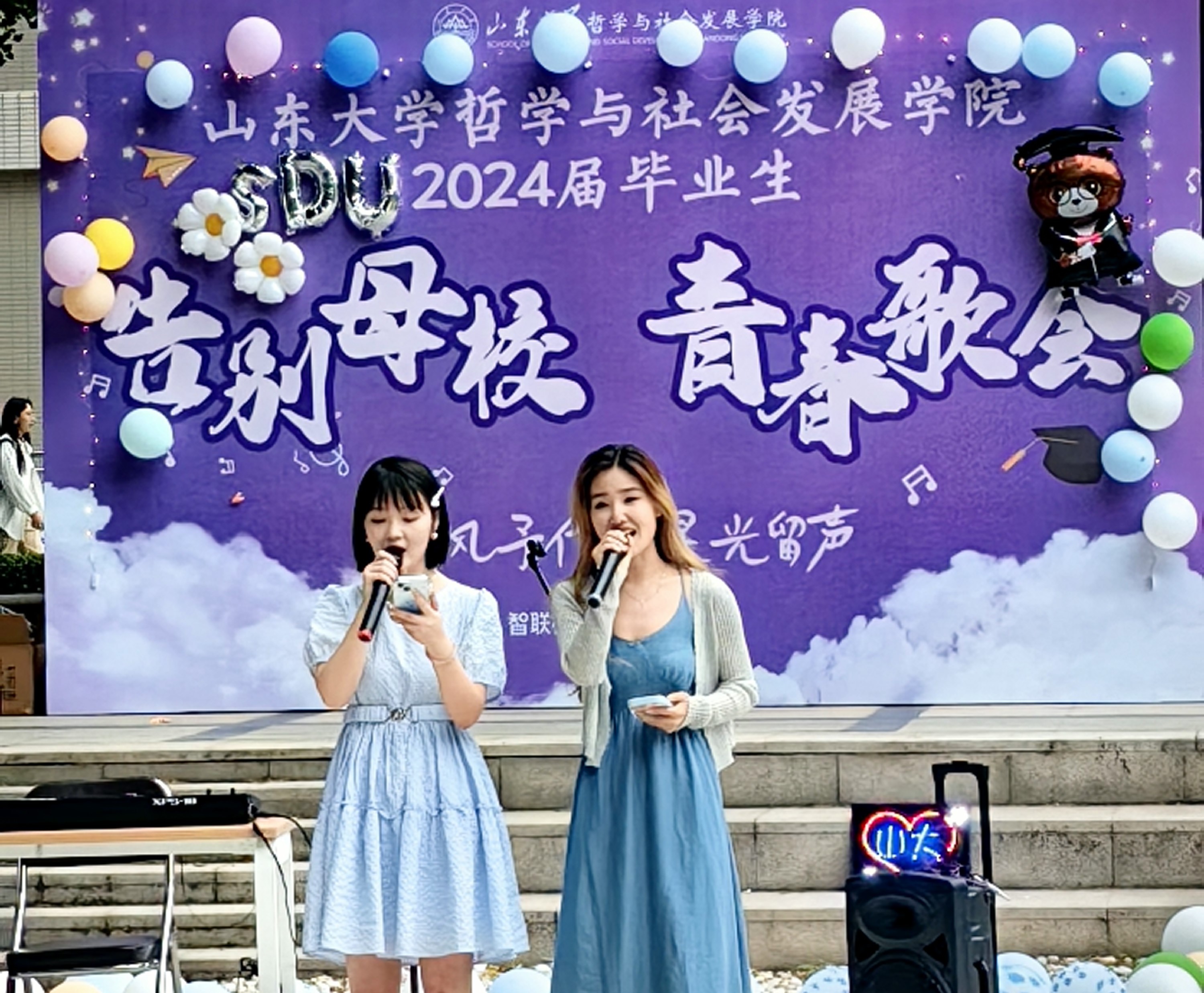 以祝福、友情、远方和告别等关键词为主题,本次告别母校青春歌会共编排了《岁月神偷》《仰望星空》《凤凰花开的路口》《夜空中最亮的星》等歌舞节目三十余个,同学们通过丰富多元的表演形式,献上了实力与技巧兼具的精彩演唱。回望过去,大家一同回忆着山大时光中的经历和感想;展望未来,师生共同唱响对未来的憧憬和希冀。
