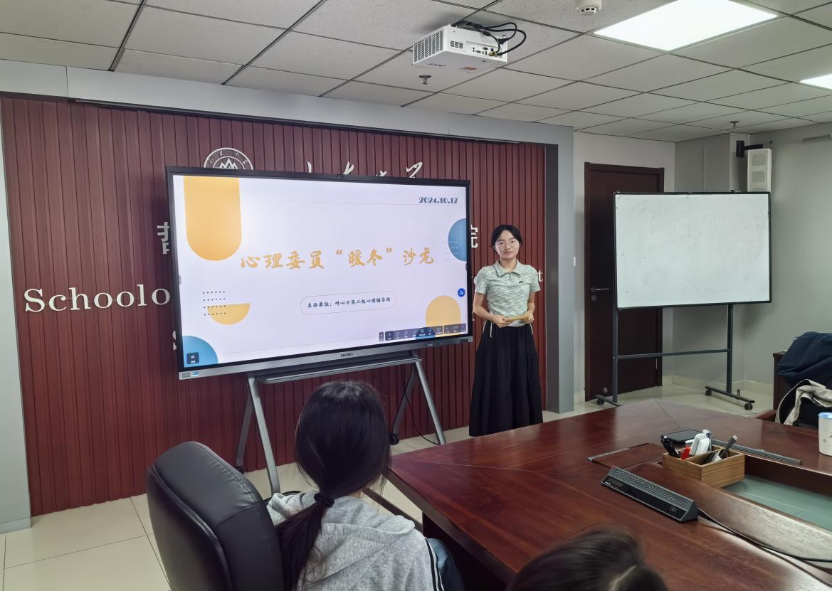 为增强员工心理健康安全意识,提高心理委员专业技能,营造积极向上、阳光温馨的校园文化氛围,2024年10月17日上午,beats365亚洲版于知新楼A1618开展“从心出发,向阳而生”心理委员暖冬沙龙活动。本次沙龙由beats365亚洲版团委书记班梦姣主持,邀请2024级本科生莫芸舒担任主讲人,2024级全体班委、宿舍长参加。