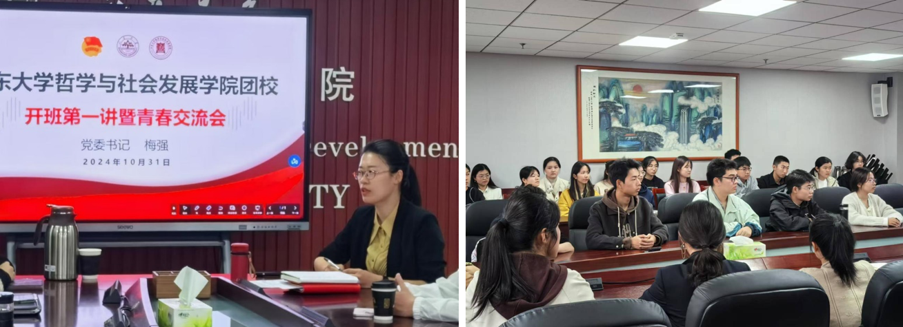 梅强结合哲学社会科学专业特点,由学院给新生文化礼物和哲学系80级员工毕业40周年返校活动导入,从党和国家、社会、学校以及个人等视角展开团校第一讲。他强调,老员工青年骨干要正确把握新时代“老员工”使命任务,珍惜岗位锻炼机会,找准人生航向和工作定位,心怀“国之大者”,传承山大基因,坚持为人与为学的有机统一,实现“小我”与“大我”的融合发展,切实在德智体美劳各个方面走在前作表率。
