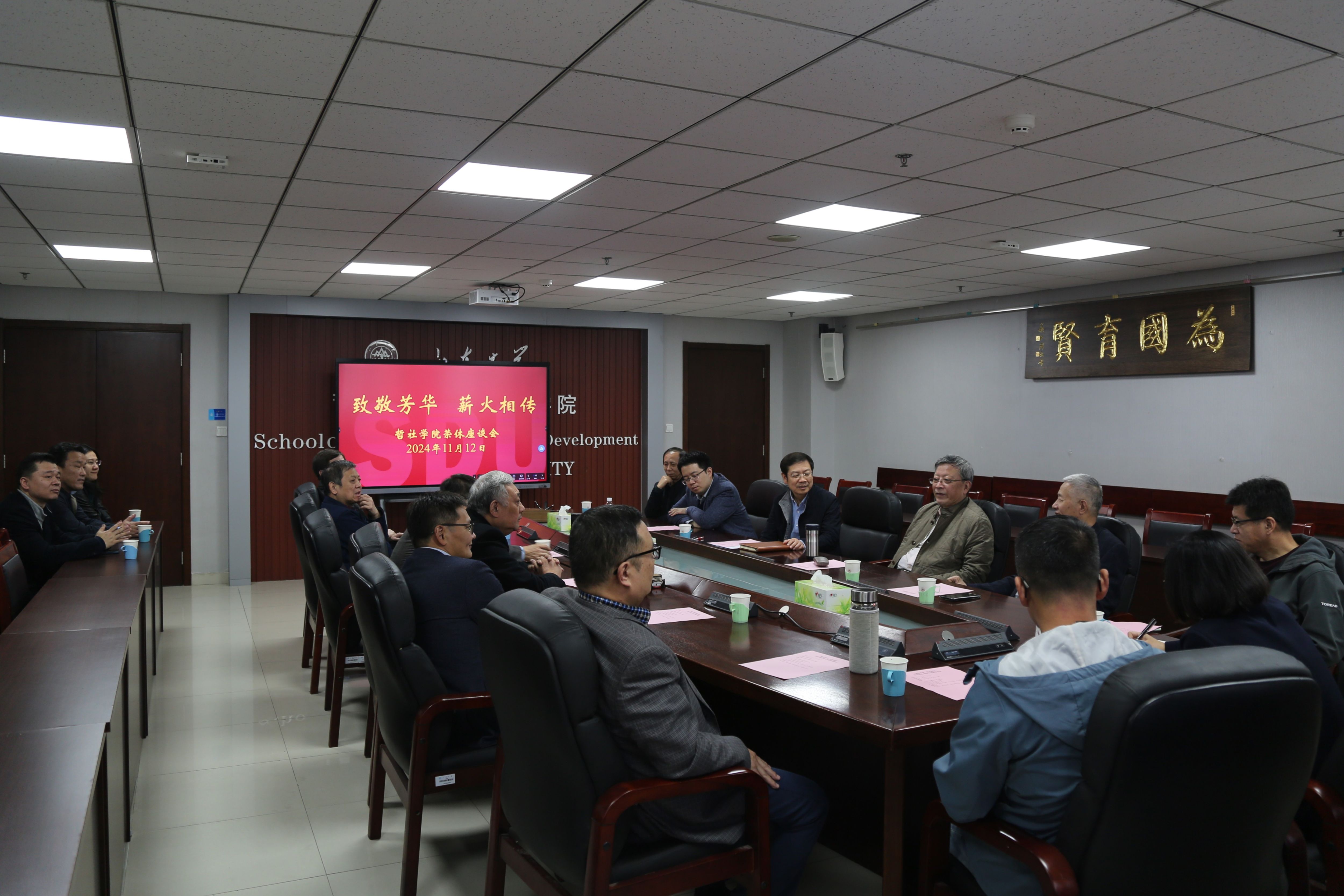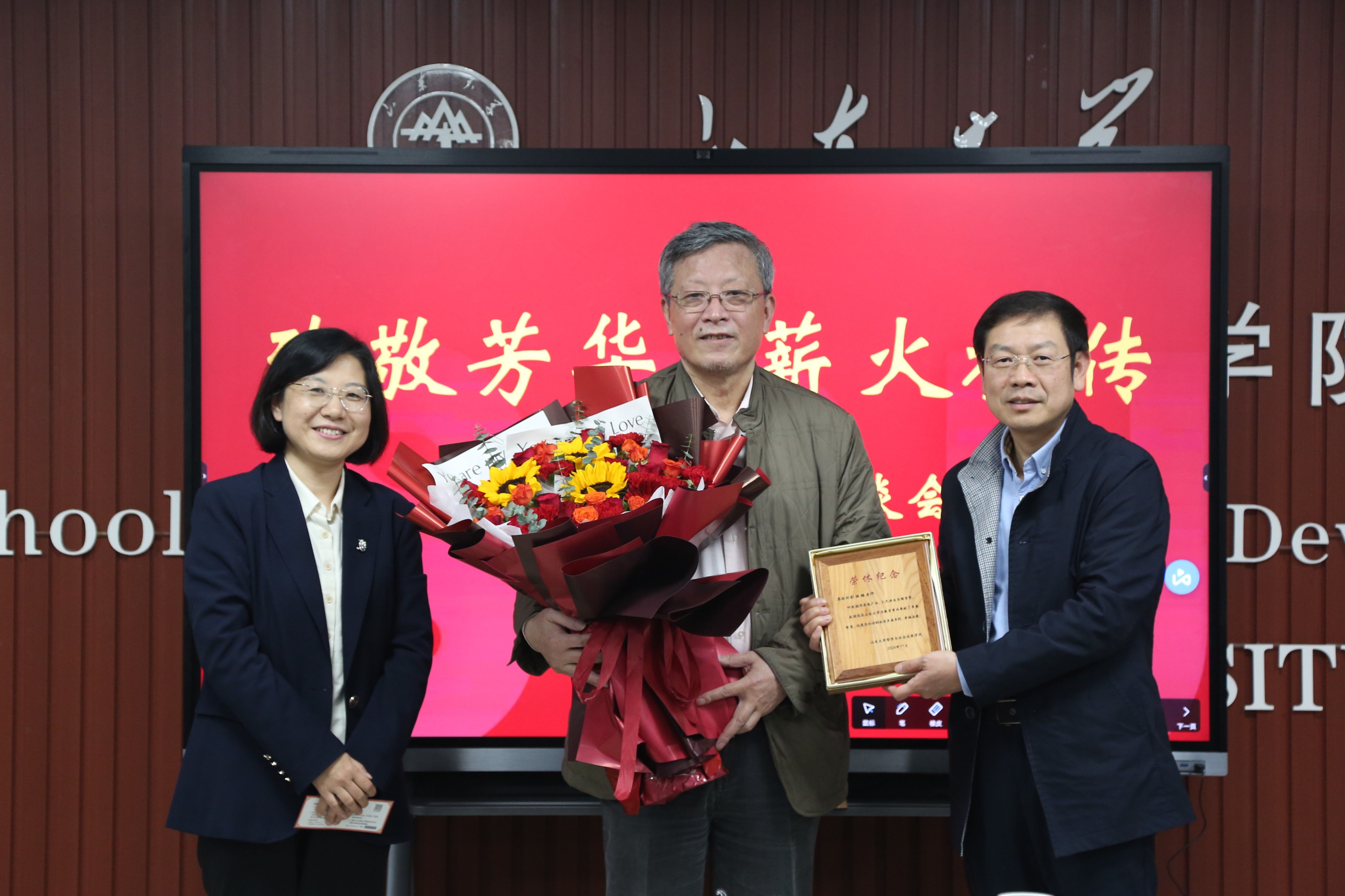 座谈会上,与会老师共同追忆、畅谈与刘陆鹏老师的同窗和同事情谊。大家兴致盎然,回忆往昔岁月相处的难忘时刻与轶事,不时传来欢快的笑声和掌声。在热烈氛围中倾诉不舍之情,寄予真切祝福。刘陆鹏老师回忆了工作中的难忘经历,表达了对学院关怀的衷心感谢和对学院事业发展的美好祝愿,以及对青年教师的谆谆嘱托,激励大家努力拼搏,勇创佳绩。青年教师表示要学习传承好老教师爱岗敬业、乐教爱生、知行合一、甘于奉献的优秀品格,当好员工成长成才的引路人,争做新时代“四有”好老师。整个交流会场散发出教育的情怀、哲学的智慧和人性的光辉。