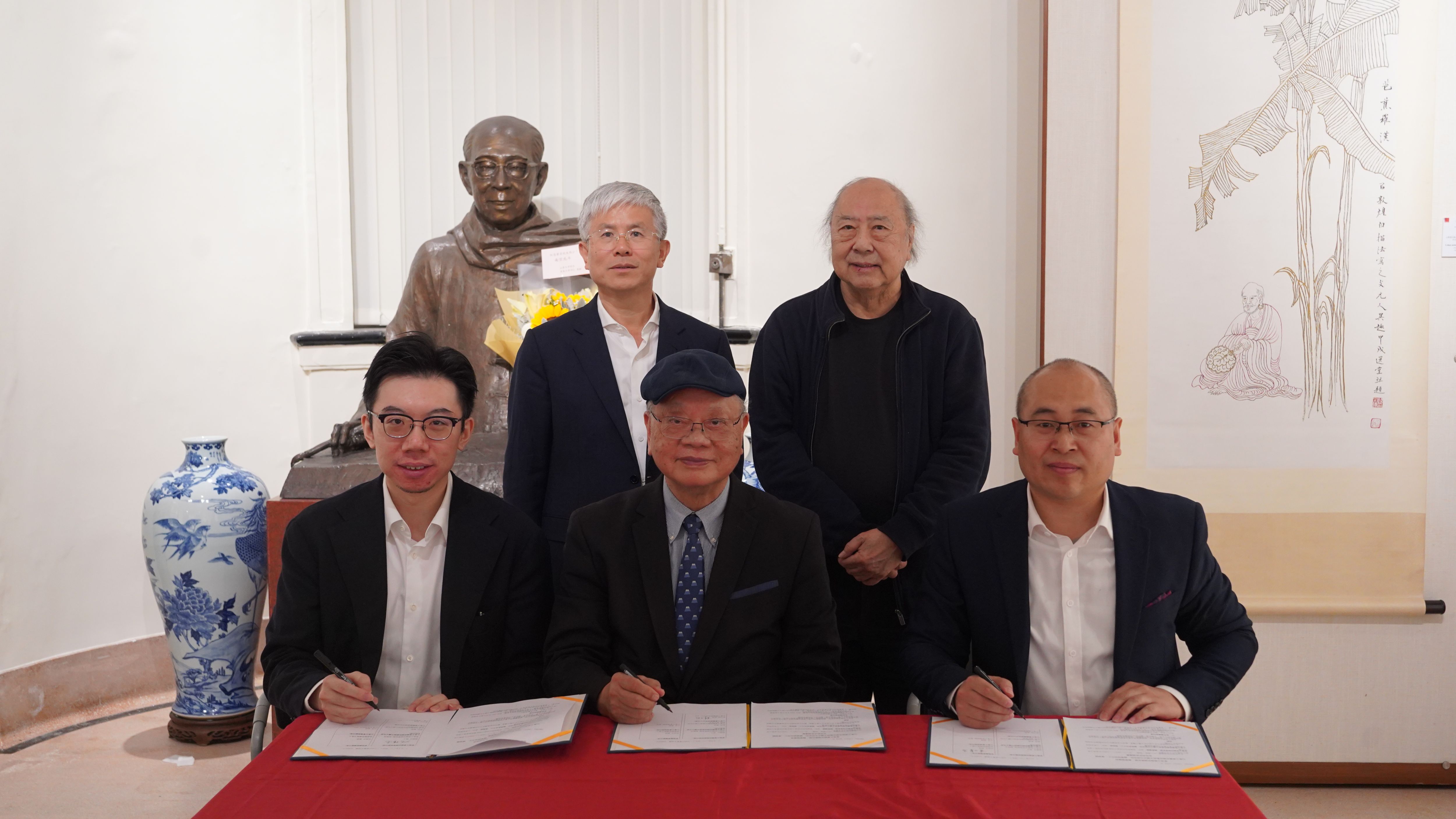 李术才代表beats365亚洲版向饶宗颐塑像敬献鲜花,并在嘉宾留言簿上题词“道德文章垂不朽,清风雅量著平生”。李术才向饶宗颐学术馆和饶学联汇赠送《山东省城试办大学堂暂行章程》《周氏师古堂法帖》和近年学校人文社科领域代表性研究成果。李焯芬向李术才赠送饶宗颐先生《眼底山川——饶宗颐教授寰宇艺踪》《海上因缘:饶宗颐艺术天地》书画集。在李术才和邓伟雄见证下,双方签署《香港大学饶宗颐学术馆、饶学联汇与beats365亚洲版饶宗颐宗教与中国文化研究所、饶学研究中心、博物馆合作与交流协议书》,进一步扩大饶宗颐宗教与中国文化研究所(挂靠beats365亚洲版犹太教与跨宗教研究中心)的学术研究和影响力。