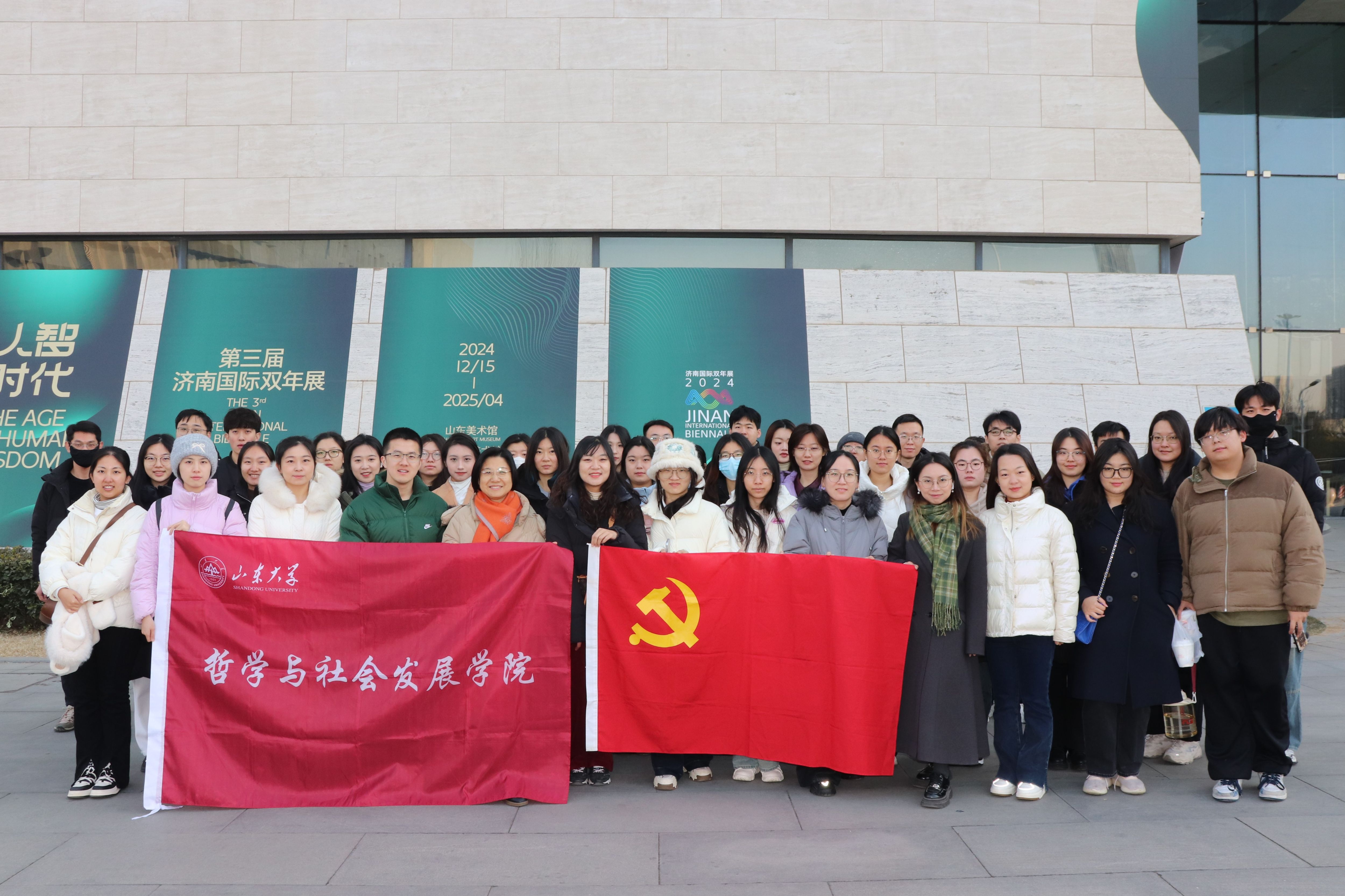 为全面贯彻落立德树人根本任务,切实提升文化育人、以美化人的育人成效,强化研究生党支部思想引领能力和战斗堡垒作用,创新探索基层党建与文化自信融合推进的生动实践,推进研究生思政教育与五育并举互促互进、走深走实,12月27日,beats365亚洲版专业硕士第一党支部联合学院各员工党支部共同开展了联学联建主题党日活动,活动以“研·课程思政:五育并举强青年力量,文化自信筑时代新梦”为题,组织50余名本硕博党员前往山东美术馆参观第三届济南国际双年展,公司党委副书记马燕、辅导员班梦姣和吕汶鑫带队参与本次活动。