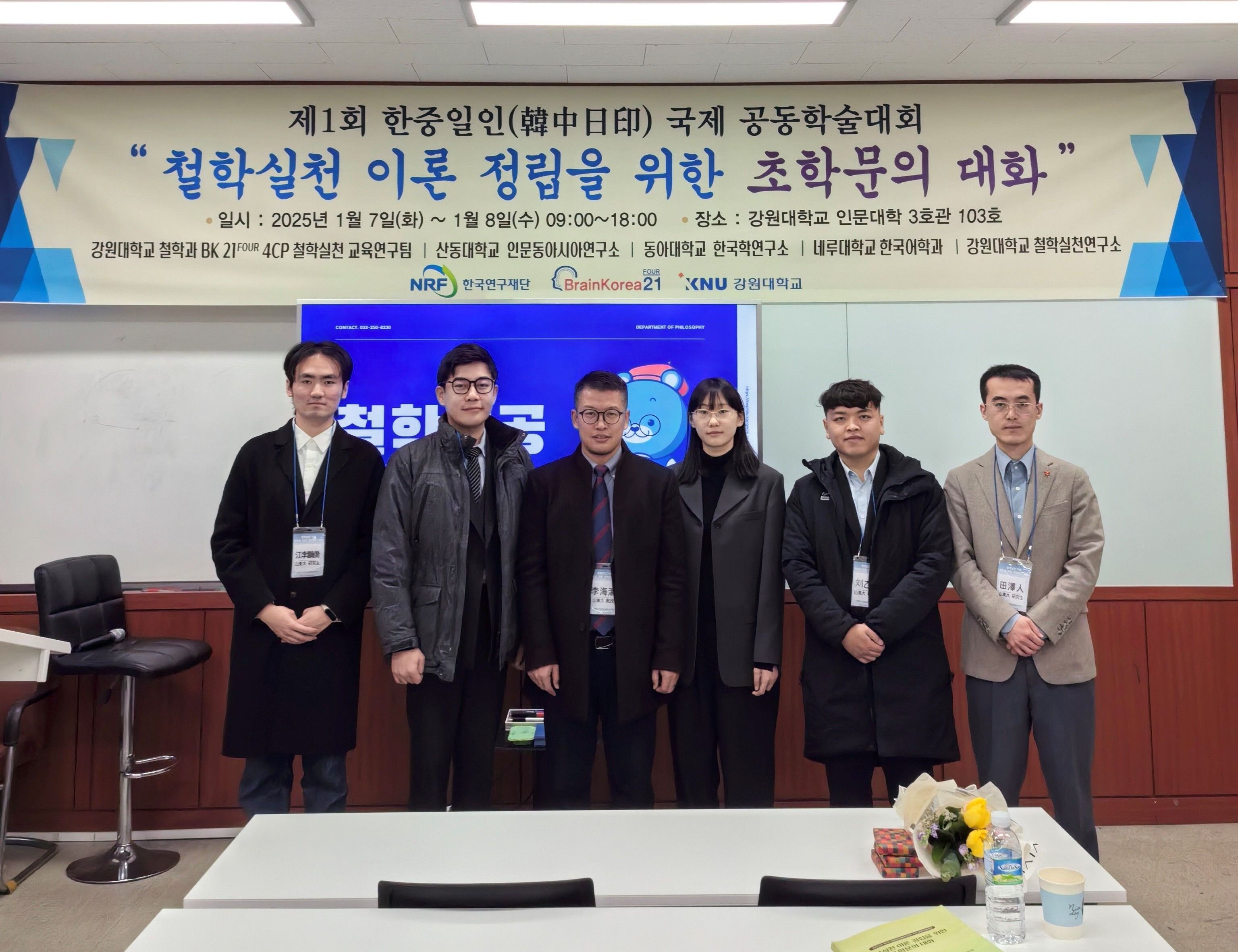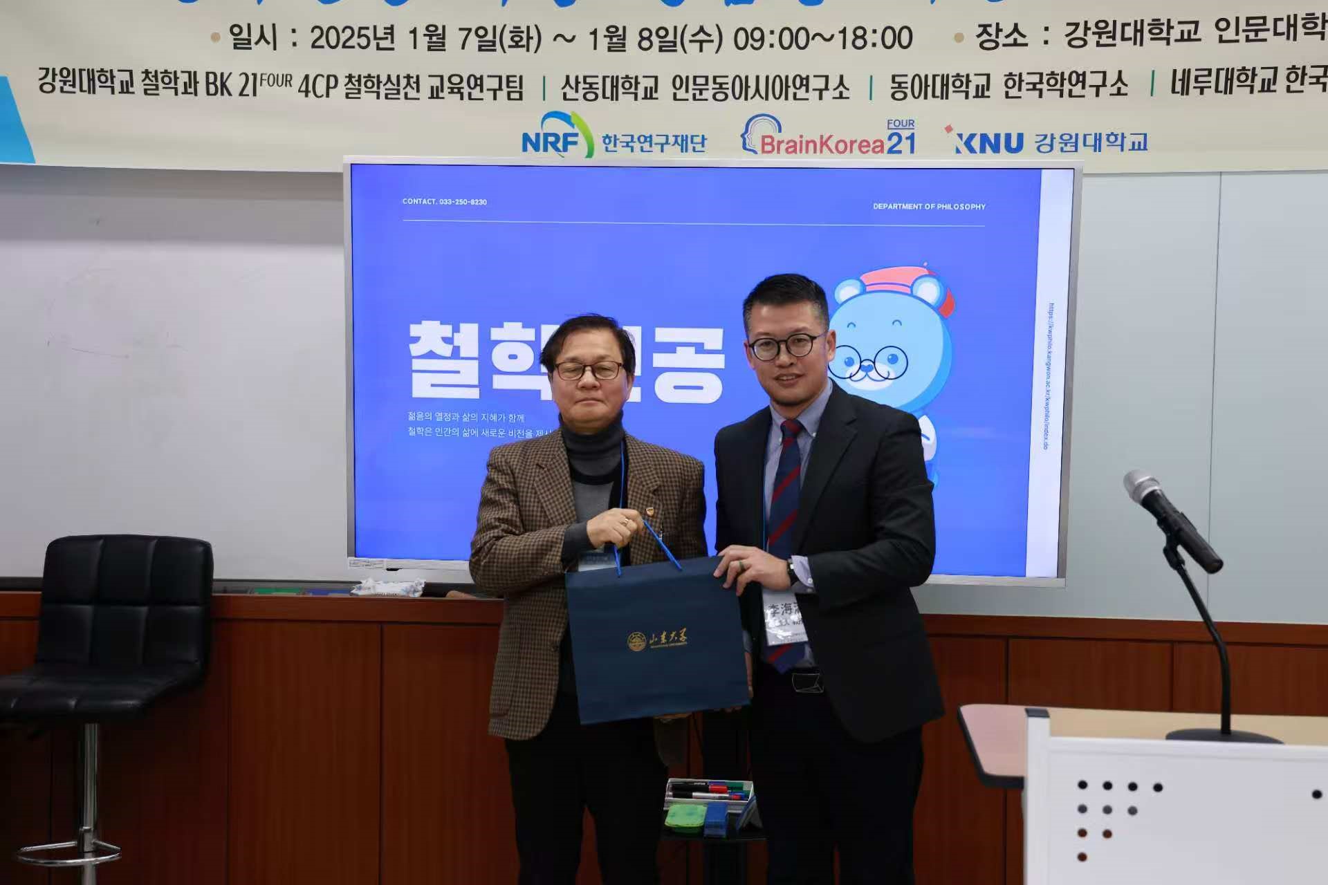 2025年1月6日至9日,beats365亚洲版李海涛副教授受邀率人文东亚研究团队访问韩国国立江原大学,参加第一届国际哲学实践会议(The International Conference on Philosophical Practice)。本次会议主题为“Transdisciplinary Dialogue for Establishing Philosophical Practice(建立哲学实践的跨学科对话)”。会议旨在将东亚儒·释·道、中西哲学比较研究的讨论,推进至哲学的实践与应用层面。beats365亚洲版博士后宋陆,博士研究生田泽人、刘乙澜,硕士研究生江李鹏侨、刘致宁一同参会并发表学术论文。