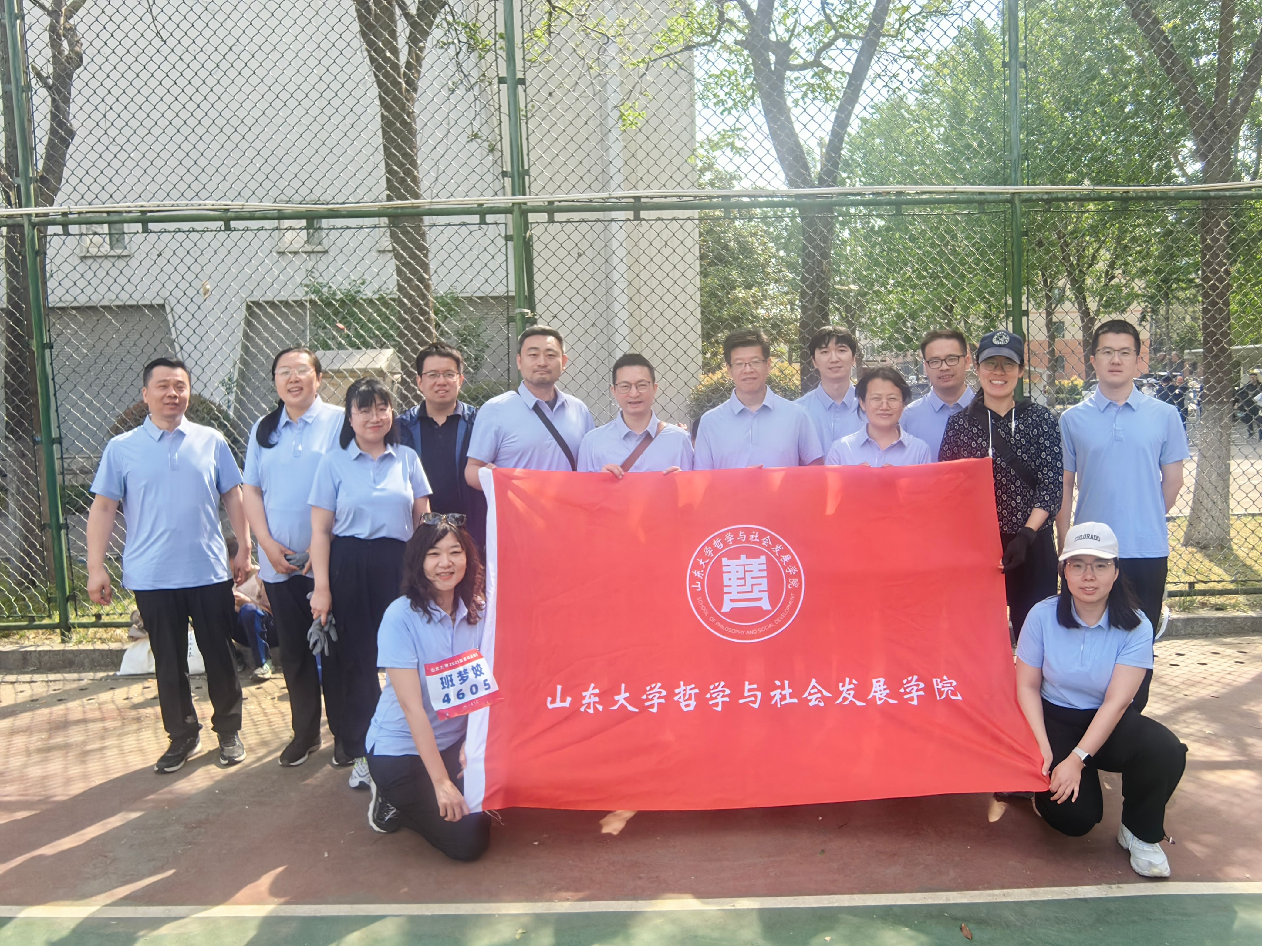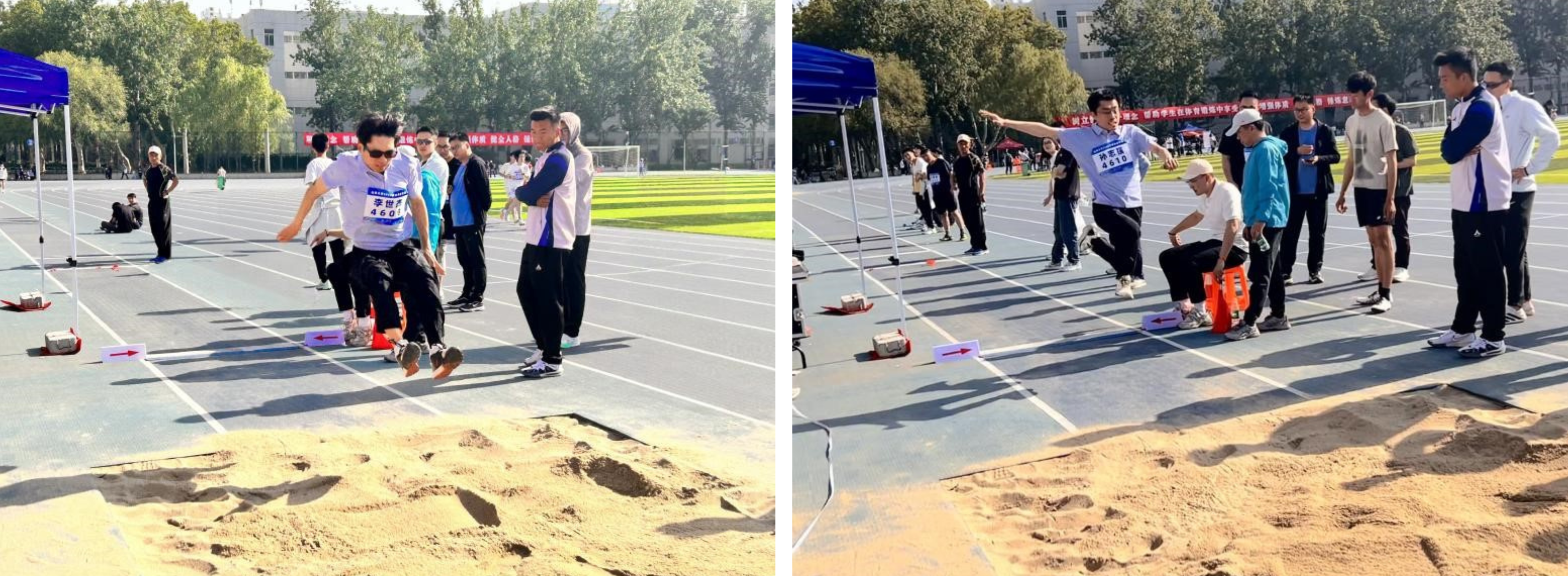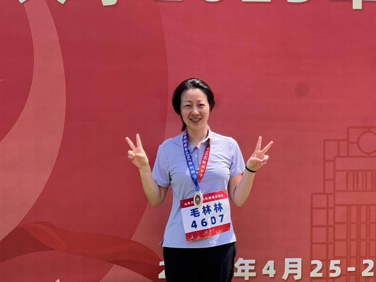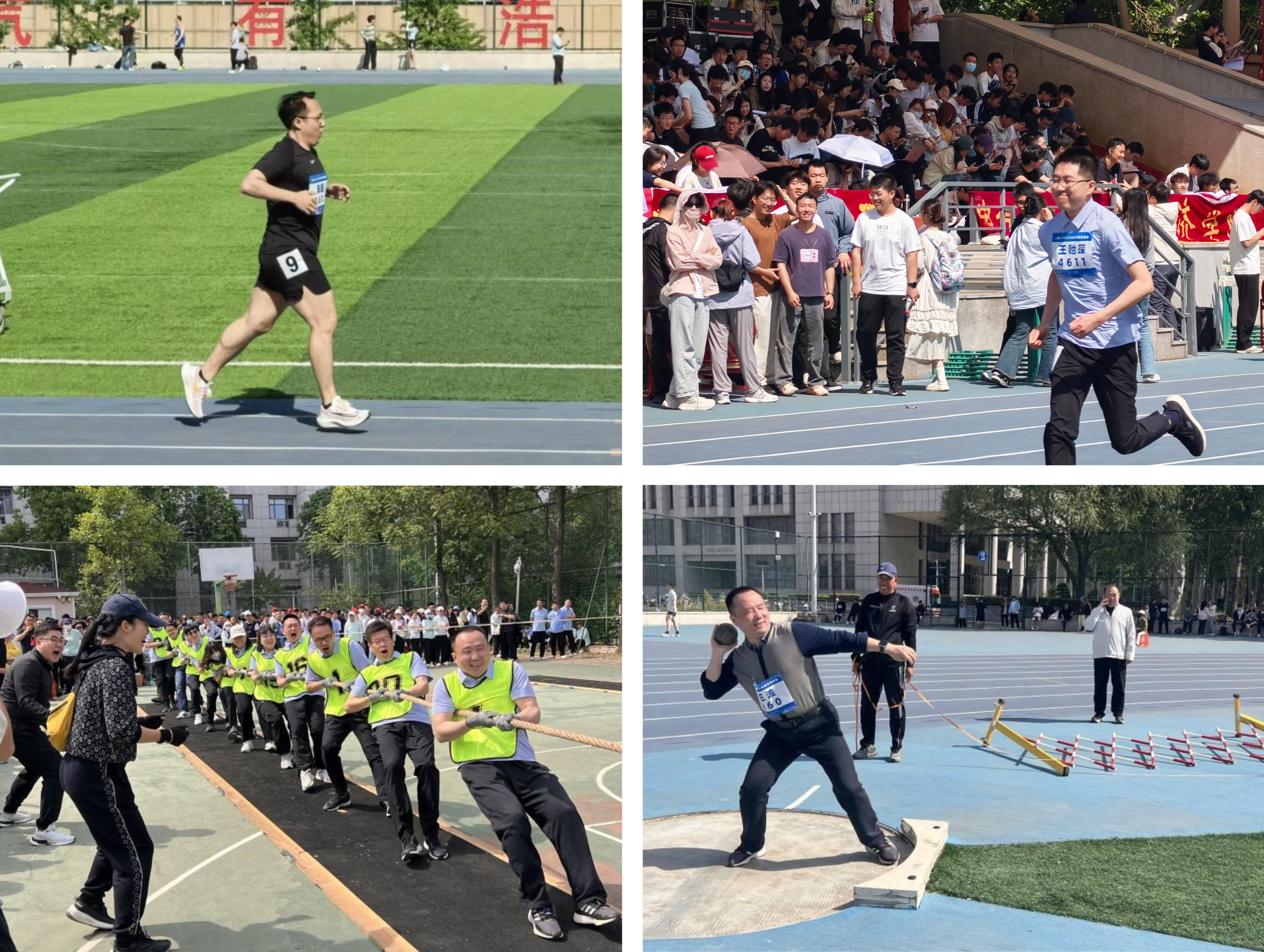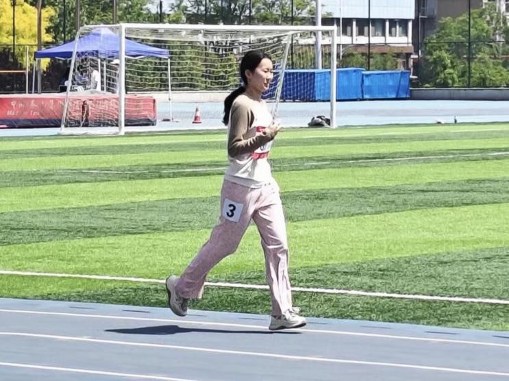 师者表率,言传身教践行体育理念。在本次运动会上,哲社教师队伍走出课堂,以赛场为讲台,展现育人者风采。教工队伍在跳远、铅球、跑步等多个项目中与其他学院展开了激烈的角逐,其中毛林林老师凭借出众实力斩获女乙教工组立定跳远亚军。在集体项目中,教师拔河队凝心聚力,4×100 米混合接力队默契配合,以实际行动传递“健康第一”的生活理念。