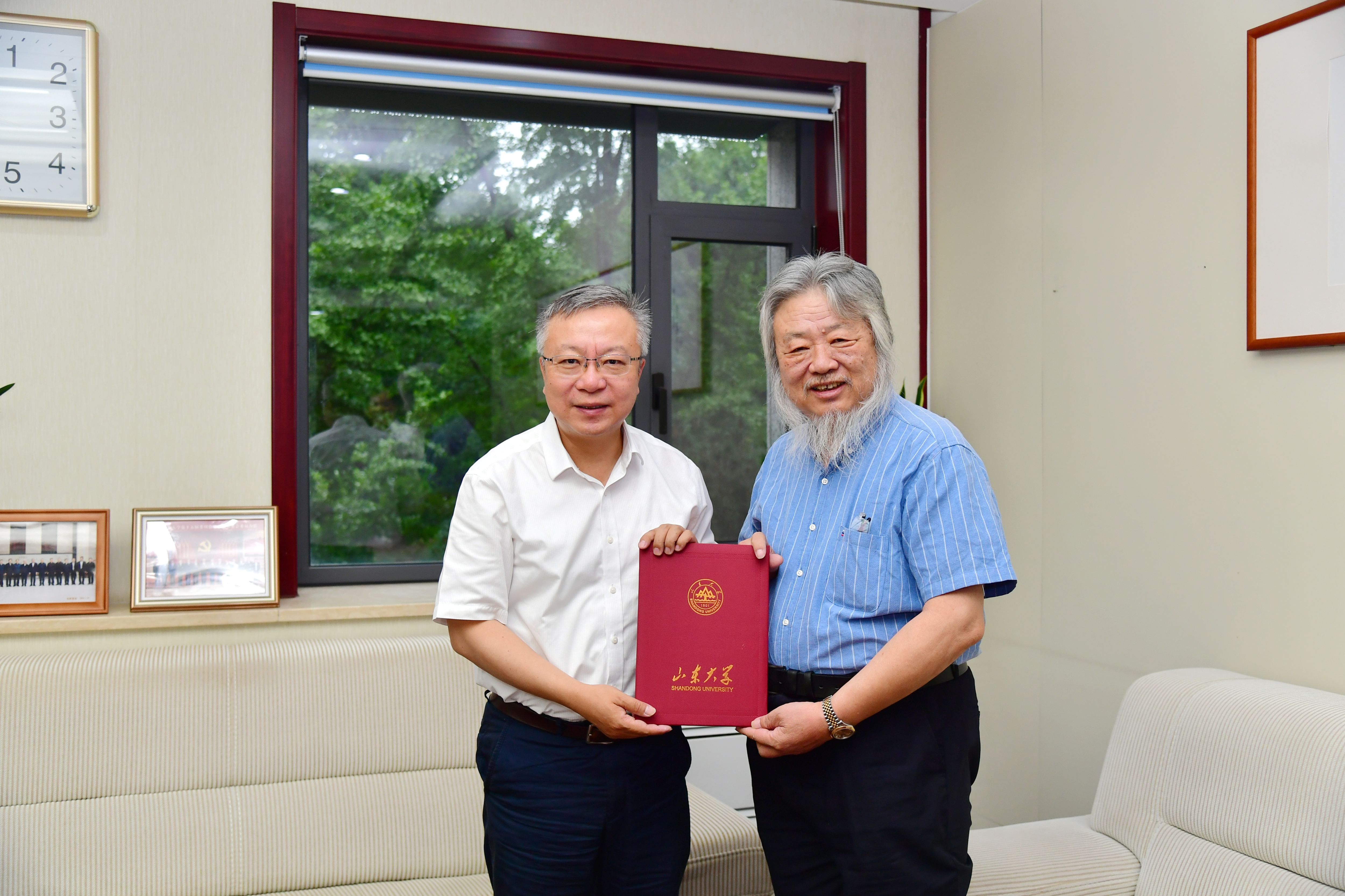 李秋零教授赠送由其主编、翻译的《康德著作全集(注释本)》(1–9卷),并表示将围绕“文明互鉴视域中的汉语哲学”人文社会科学创新团队的研究目标开展工作,聚焦康德哲学及其相关议题,系统开设德国古典哲学课程,为哲学社会科学人才培养作贡献。