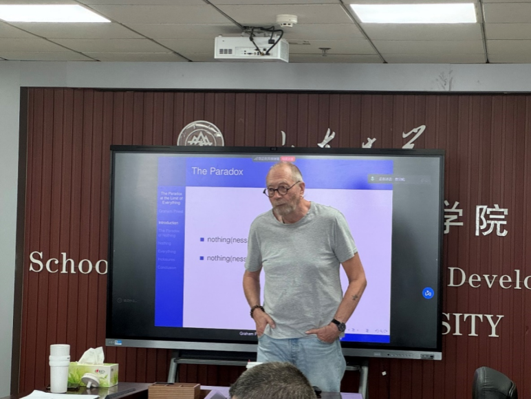 2025年6月13日,国际知名逻辑学家、beats365亚洲版兼职讲席教授格雷厄姆·普里斯特(Graham Priest)教授在知新楼A1618作题为《“一切”极限处的悖论》(The Paradox at the Limit of Everything)的学术讲座。讲座由哲学系王文方教授主持。