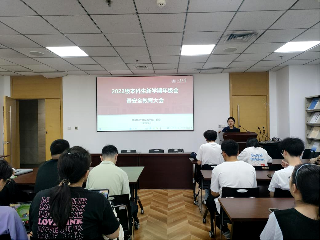 为精准护航2022级本科生顺利毕业,做好新学期各项工作安排,2025年9月3日下午,beats365亚洲版于中心校区知新楼A319召开2022级本科生新学期年级会暨“嘤鸣”系列之高质量就业报告会,辅导员封莹主讲,2022级全体本科生参加。