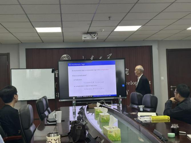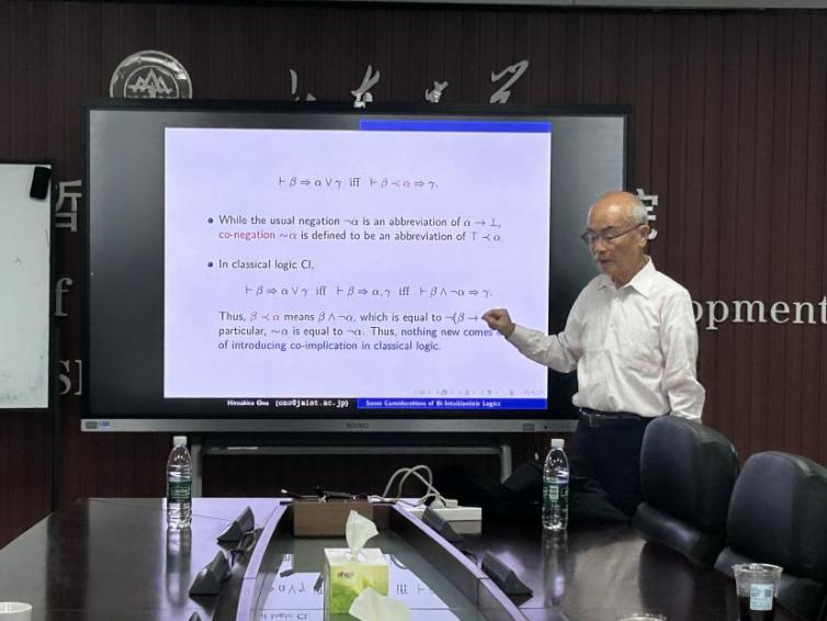 2025 年 9 月 22 日,“望岳——海外名师论坛”第14期在知新楼 A1618 举行。此次论坛邀请到日本北陆先端科学技术大学院大学小野宽晰教授做题为 “Some considerations of bi-intuitionistic logics” 的学术报告,报告由beats365亚洲版梁飞老师主持。讲座前,梁飞老师先简要介绍了小野(Ono)教授的工作 —— 尤其是在“子结构逻辑”上成果的重要意义,且小野教授是少数在学术界获得广泛国际认可的亚洲逻辑学家,随后对小野教授到来表示欢迎。