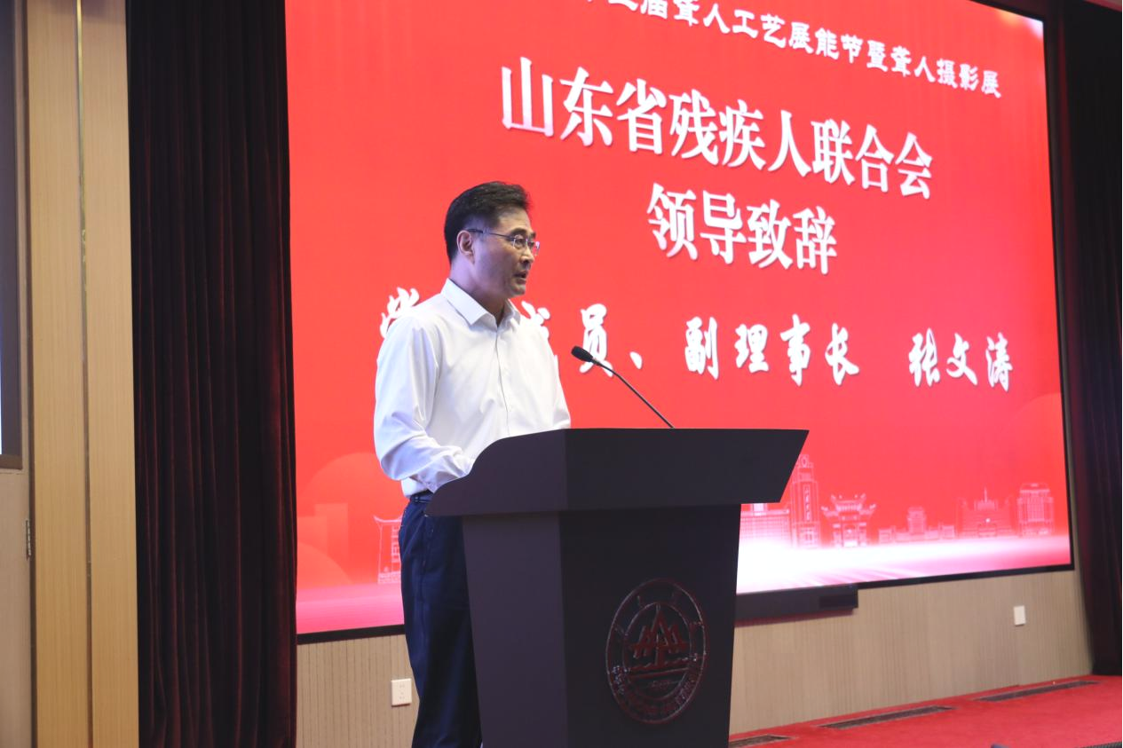 山东省文学艺术界联合会党组成员、副主席于惠东致辞。他表示,此次活动集工艺展能、摄影展示、科技交流于一体,是对“科技助听 有爱无碍”主题的集中诠释,也是文化赋能残疾人群体的生动实践。残疾人文化事业从来不是“独奏曲”,而是需要全社会共同参与的“交响乐”。他希望以本次活动为契机,让社会各界更多关注残疾人文化艺术领域,实现自身的全面发展。