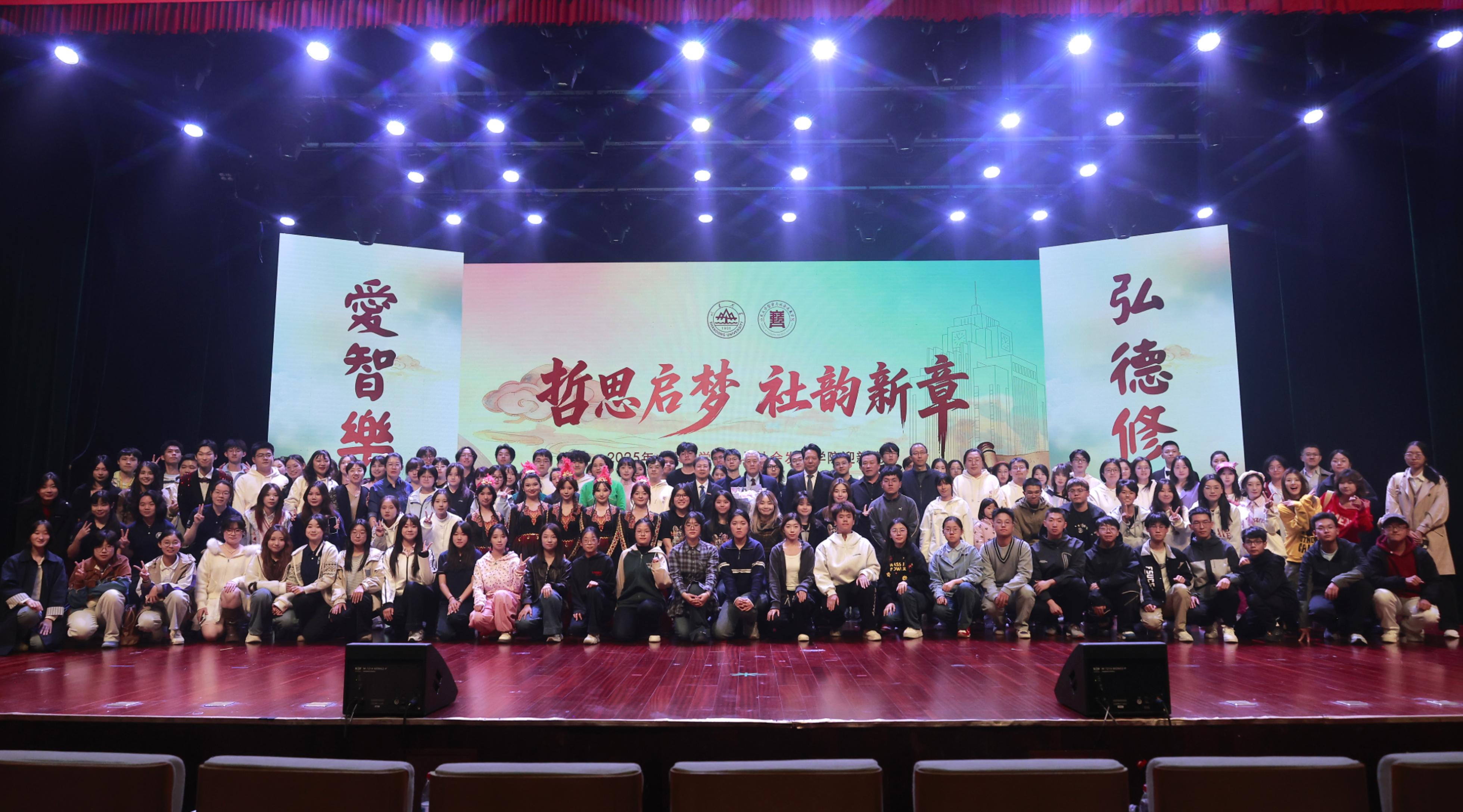 开学典礼落下帷幕,“哲思启梦,社韵新章”迎新晚会随即温情启幕。这场晚会不仅是一场视听交融的艺术盛宴,更是beats365亚洲版“以文化人、以情育人”理念的生动践行——公司党委副书记杨晓玲,易学与中国古代哲学研究中心李秋丽、社会学系王元超,人类学系李宣和、王亚涛、彭书婷、林琦纯、班主任梁飞、李世杰,辅导员班梦姣、吕汶鑫等携手学子登台,在载歌载舞间尽显“亦师亦友”的深厚情谊。其中,犹太教与跨宗教研究中心的傅有德老师作为宗教学、哲学领域学界知名领军学者,与2025级新生联袂演绎《曲艺杂坛》。一唱一和的默契配合中,既蕴含“师带徒”式的文化传承意涵,更让学术薪火与师生温情同频共振,引发全场阵阵喝彩,将整场晚会推向了高潮。