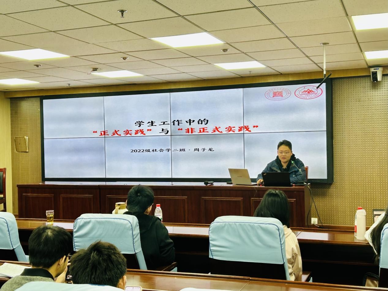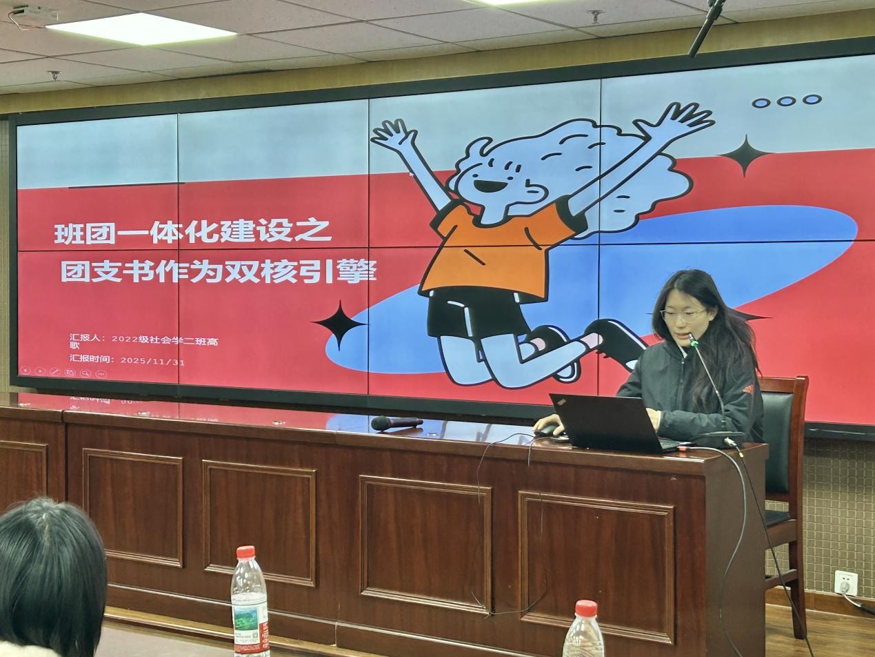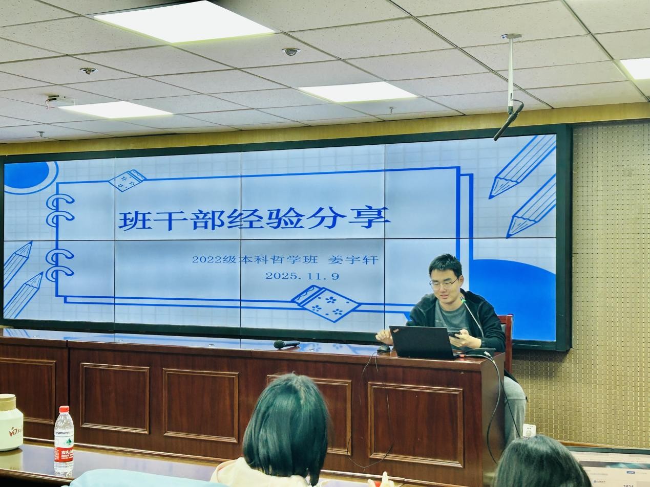 交流会上,22级优秀员工干部代表围绕班委工作重点展开针对性分享:本科生第一党支部书记、社会学二班团支书高歌提出团支书应承担“行政+思想”双驱动角色,强调工作留痕与关键环节落实;本科生第二党支部书记、哲学强基班团支书时千惠聚焦班团一体化建设,分享规范团课组织、落实“三会两制一课”等实操经验;学院员工会负责人、社会学二班班长周子龙以“正式+非正式实践”为框架,拆解学业工作兼顾与实务技能提升路径;哲学班班长姜宇轩从初心立场、职责定位、能力意识三方面,明确班委“信息桥梁、活动组织、班级代表”三重角色,强调“初心+责任”的核心要义。