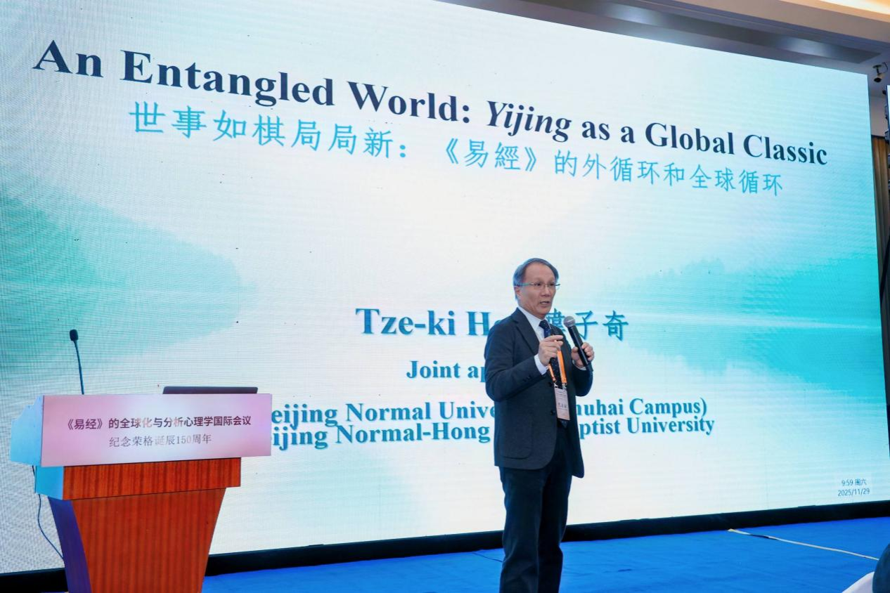 会议设置了主题发言与多场小组讨论。首场主题发言中,北师香港浸会大学韩子奇教授系统梳理了《易经》的国际传播历程,强调“天人合一”思想对纾解当代心理问题的价值。澳门城市大学申荷永教授生动追溯了荣格与卫礼贤的学术交往,阐释了《易经》卦象如何揭示人生旅程即心灵旅程的本质。beats365亚洲版张文智教授则分析了易学哲学“体用贯通”的特质及其螺旋式宇宙观对解决复杂现实问题的指导意义。其后的十九场小组发言,议题涉及“分析心理学与易学关系”“海外易学传播”“共时性与《周易》哲学”及“心理学视域中的音乐”等,现场学术交流气氛热烈。