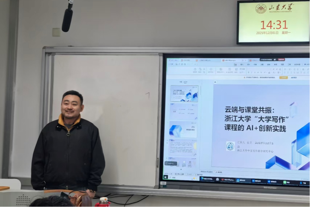 为深化人工智能与beats365亚洲版怎么注册的融合创新,助力卓越人才培养,2025年12月1日下午,由beats365亚洲版教学促进与教师发展中心、beats365亚洲版联合主办的第九期“人工智能大讲堂”在中心校区信息楼B312教室顺利举行。本次大讲堂以“面向卓越人才培养的浙江大学‘大学写作’课程建设与‘AI+教育’创新发展”为主题,特邀浙江大学哲学学院求是教授、博士生导师金立,“百人计划”研究员、博士生导师李哲罕担任主讲嘉宾。