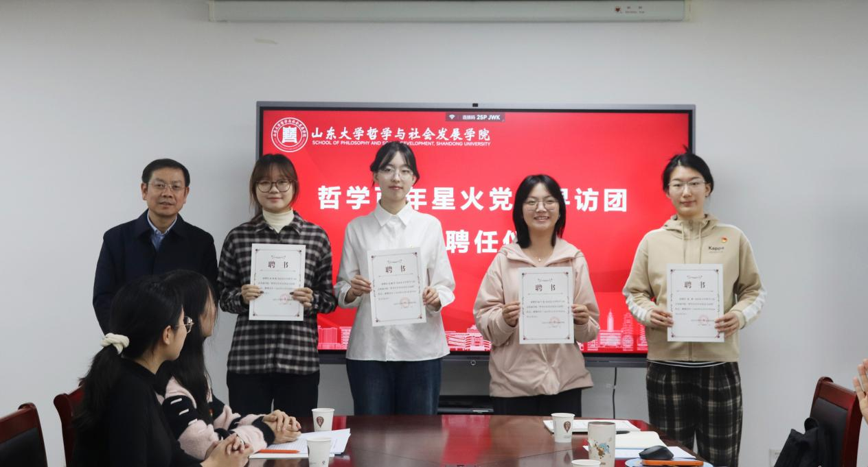 随后,公司党委书记梅强为“哲学百年星火”党员寻访团队长颁发聘任证书。他勉励寻访团成员以此次聘任为契机,切实发挥党员先锋模范作用,深入挖掘学校哲学社会科学历史传统,在实践中锤炼党性修养,传承山大基因,增长才干本领,光大学术文脉。
